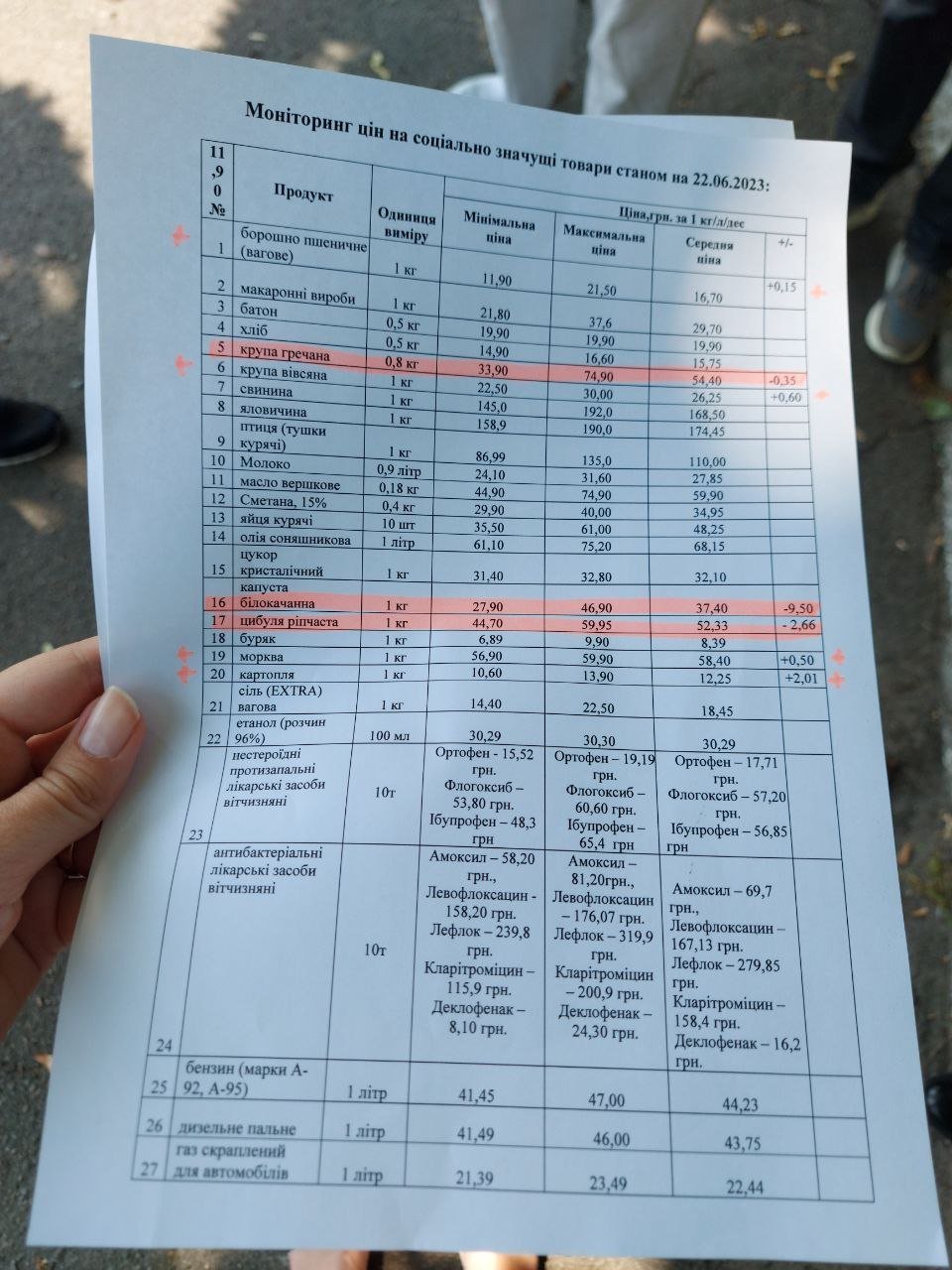 - капуста — на 9,50 грн за кг;