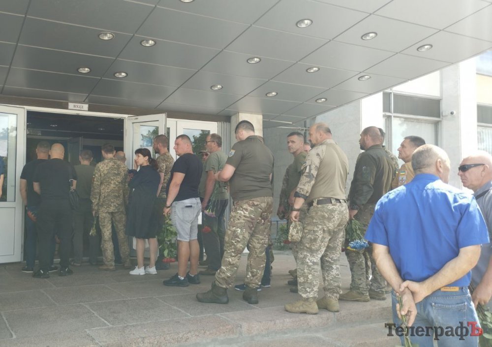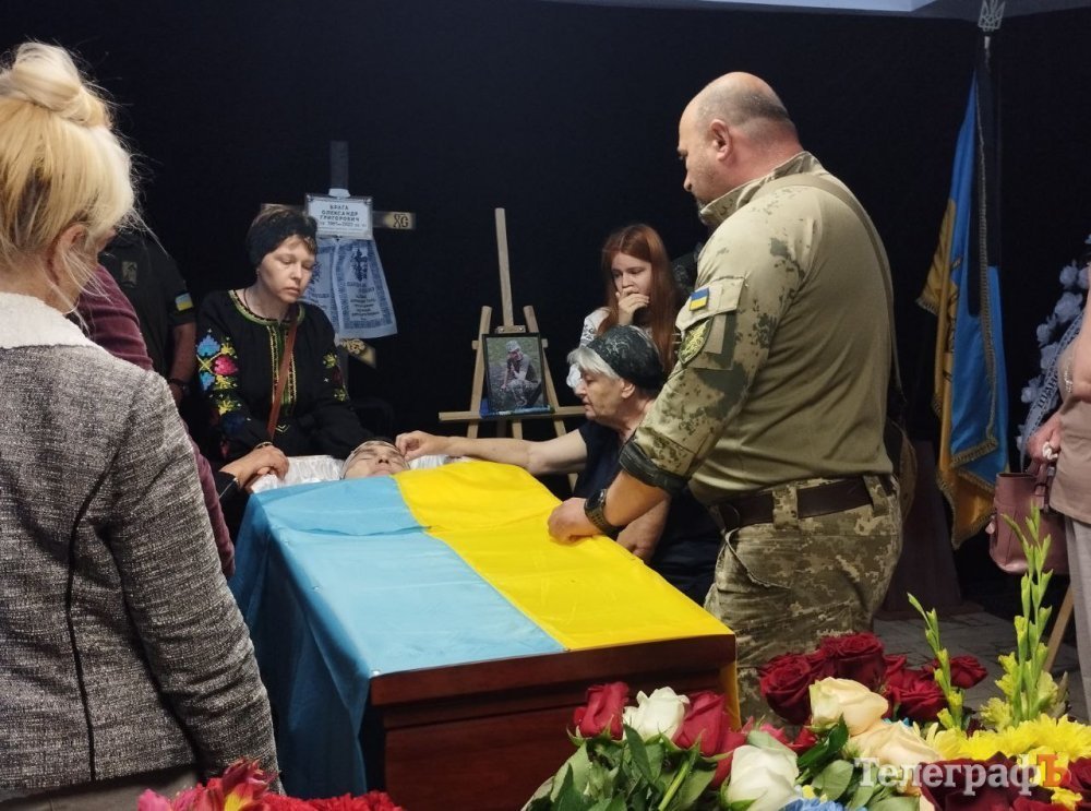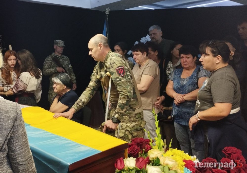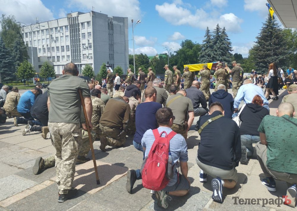 Схилившись на коліно, кременчужани утворили живий коридор та віддали шану загиблому захиснику України. Після панахиди у Свято-Миколаївському соборі тіло військового мають кремувати, а далі поховати на Свіштовському цвинтарі у Кременчуці.