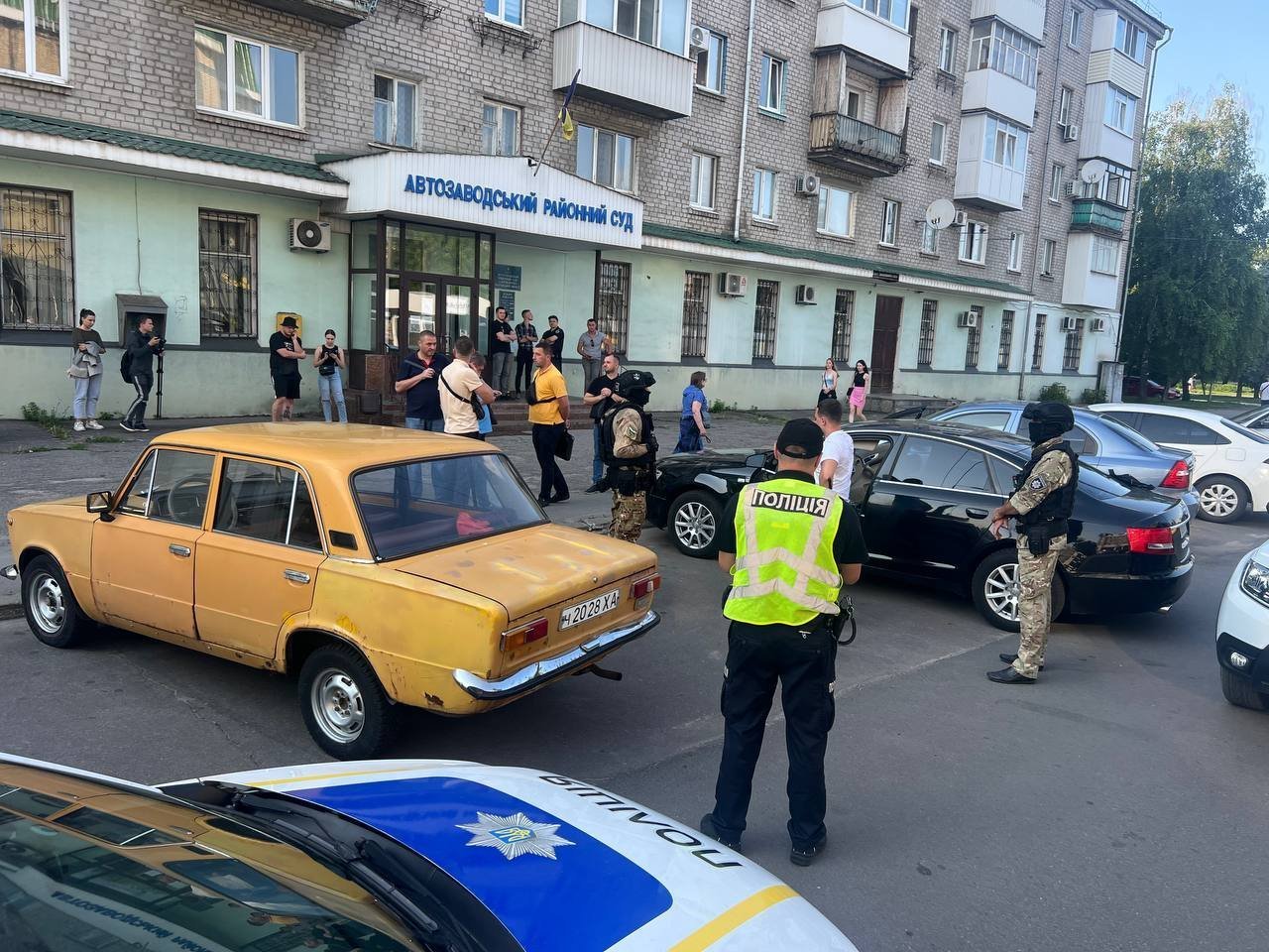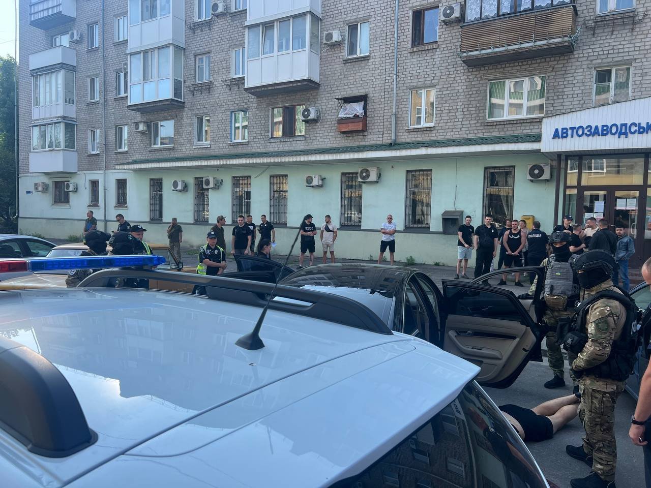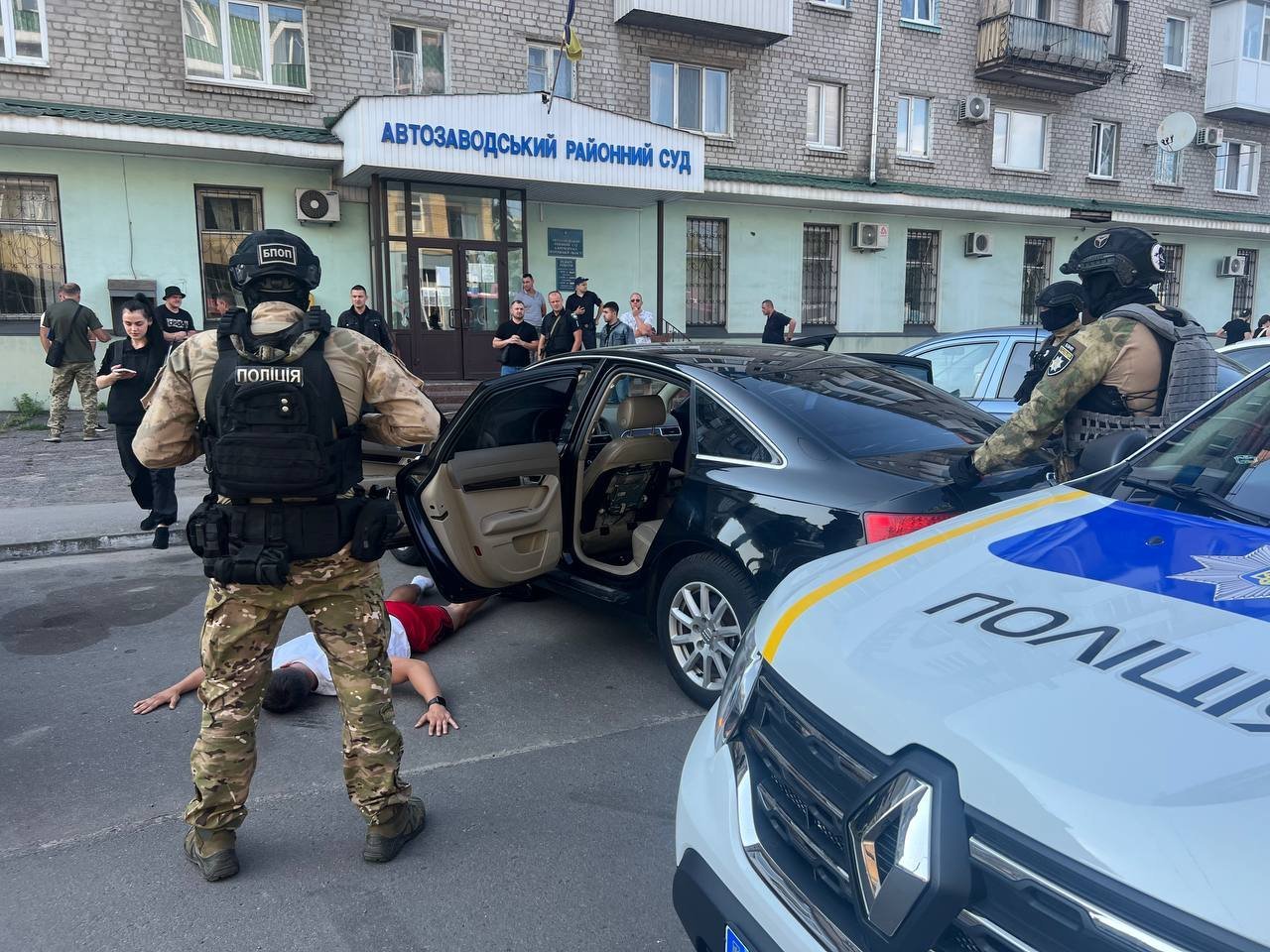 Щойно з’явилася інформація про те, що поблизу Автозаводського районного суду поліцейські з автоматами поклали на асфальт молодиків та проводять огляд їхньої автівки.