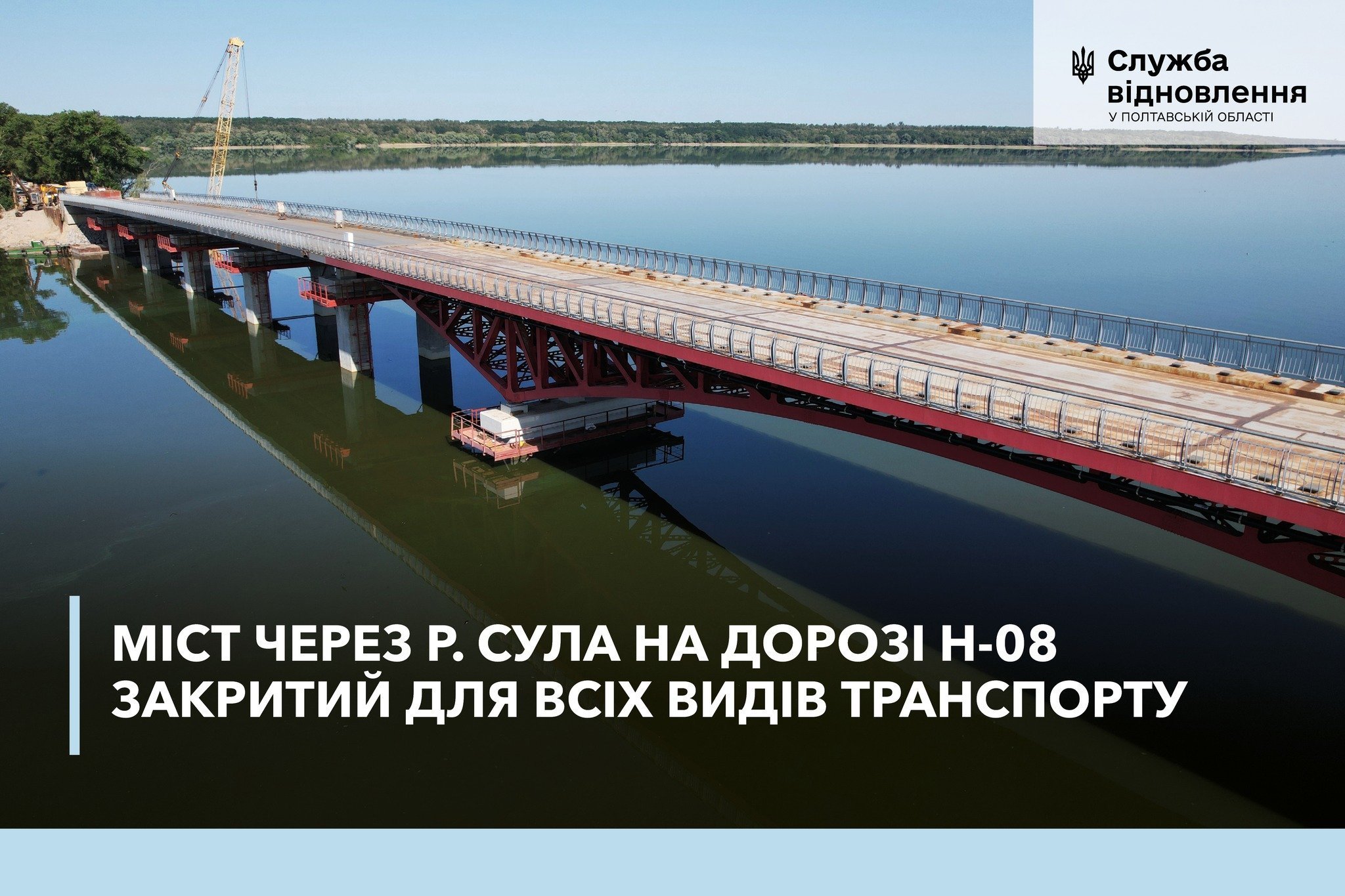 Міст через річку Сула в селі Липове Кременчуцького району закритий для всіх видів транспорту. Про це нагадує Служба відновлення та розвитку інфраструктури у Полтавській області.