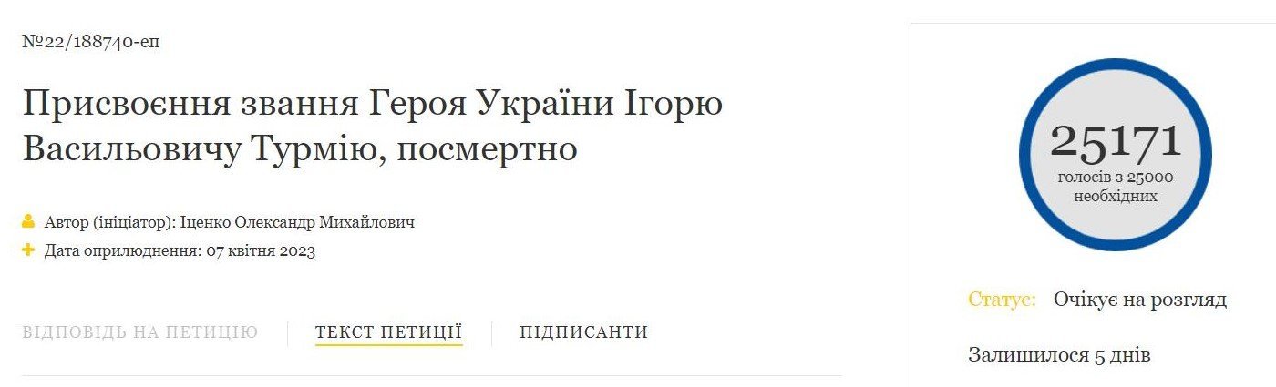 Петицію щодо посмертного присвоєння звання Героя України кременчужанину Ігорю Турмію створили 7 квітня.