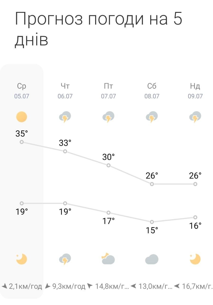 Мобільні застосунки також попереджають кременчужан про кілька дощових днів із грозами.