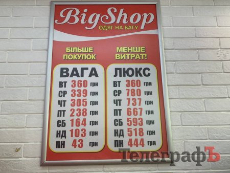 «Кременчуцький ТелеграфЪ» зазирнув у найближчі секонди на вул. Небесної сотні. Найнижча ціна в останній день за вживані речі в одному з магазинів складає 43 гривні, у сусідньому — 21 гривню за кілограм.