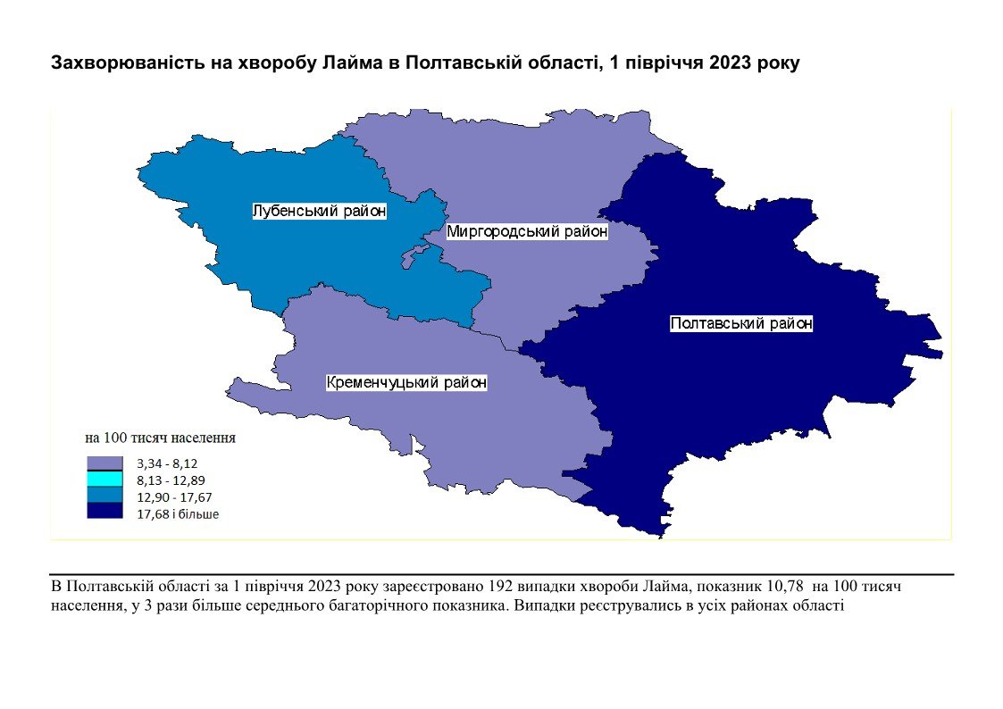 Випадки хвороби Лайма реєстрували по всій Полтавщині. Найбільше хворіли жителі Кременчуцького, Полтавського та Миргородського районів.