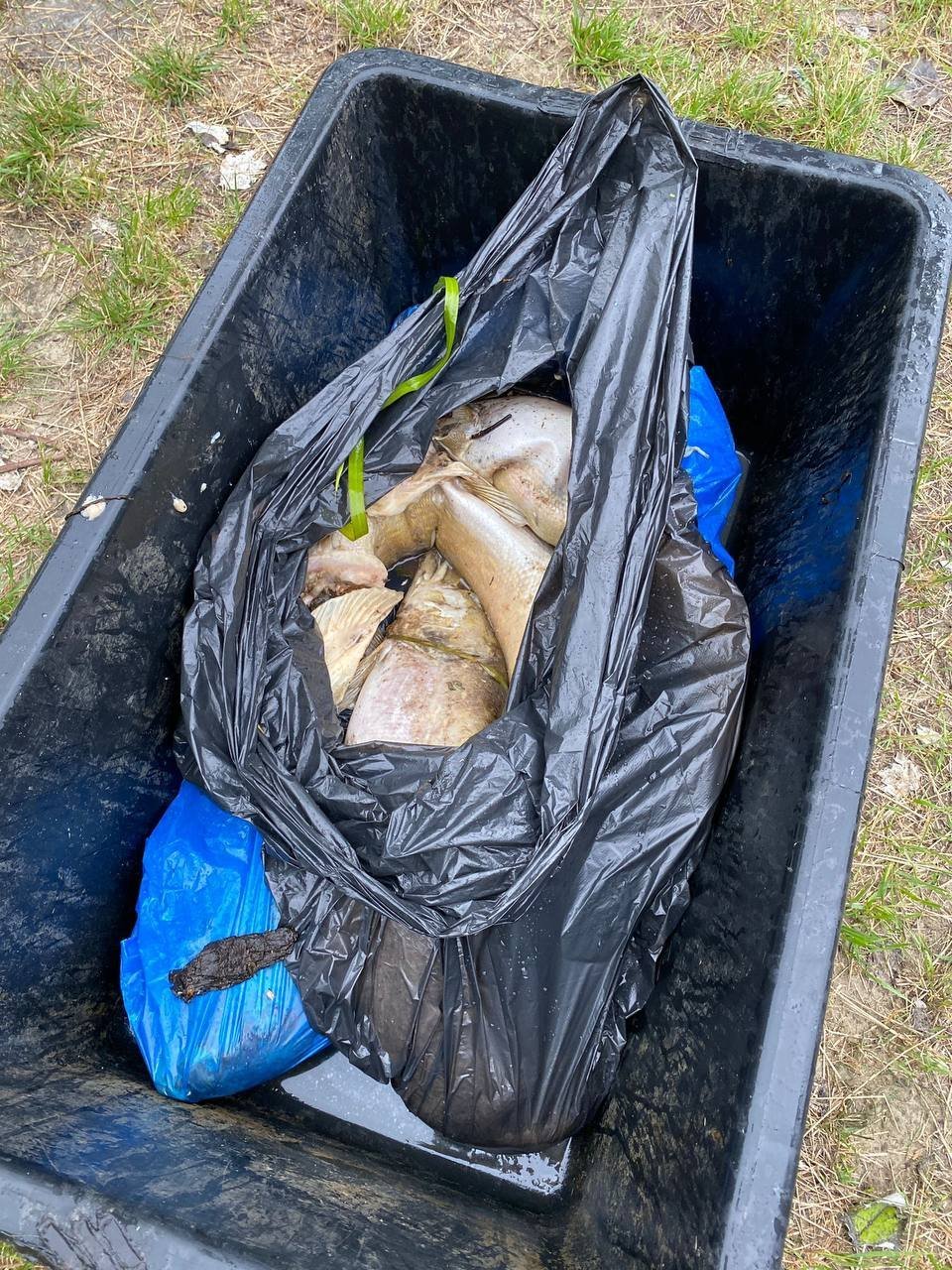 У місцевій Держпродспоживслужбі звітують, що протягом двох днів — 13–14 липня — разом зі спеціалістами управління Держагентства меліорації та представниками Омельницької територіальної громади збирали рибу для утилізації. 13 липня утилізували 150 кг риби, 14 липня — понад 80 кг. Утилізовану рибу пересипають хлорволокном, а місця збору мертвої риби — дезінфікують. Роботи тривають.