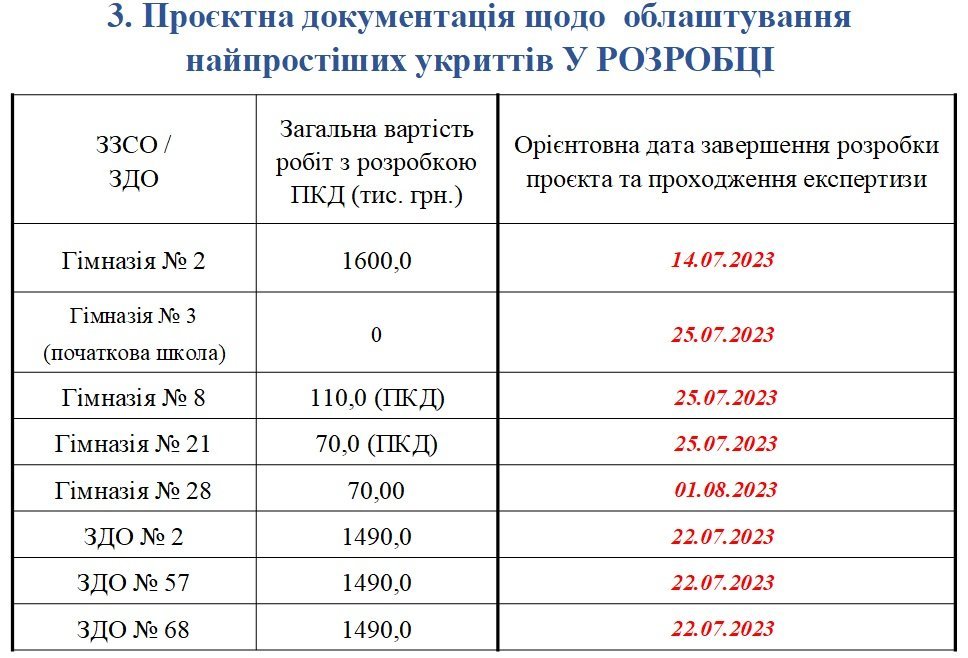 3. Почали розробляти документацію для облаштування укриття у гімназії №28.