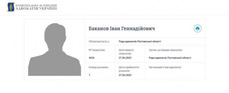 Стало відомо, що Баканов проходив стажування в адвоката, який обліковується в Раді адвокатів Полтавської області. Після цього він отримав відповідне свідоцтво 27 червня.