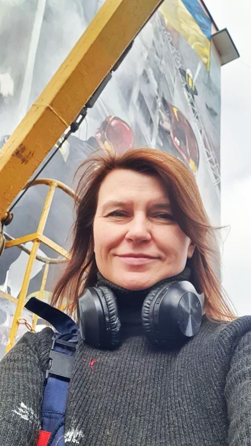 Над стінописом працювала речниця ДСНС Полтавської області Світлана Рибалко. Вона створювала ескіз близько тижня, на основі фотографій пресслужби ДСНС, зокрема, із Полтави та Києва. Світлана Рибалко почала роботу над муралом у жовтні 2022 року. Щоб точно перенести малюнок на стіну, її площу довелося розділяти на квадрати. Наприкінці мурал покрили лаком, щоб якнайдовше зберегти яскравість фарб.
