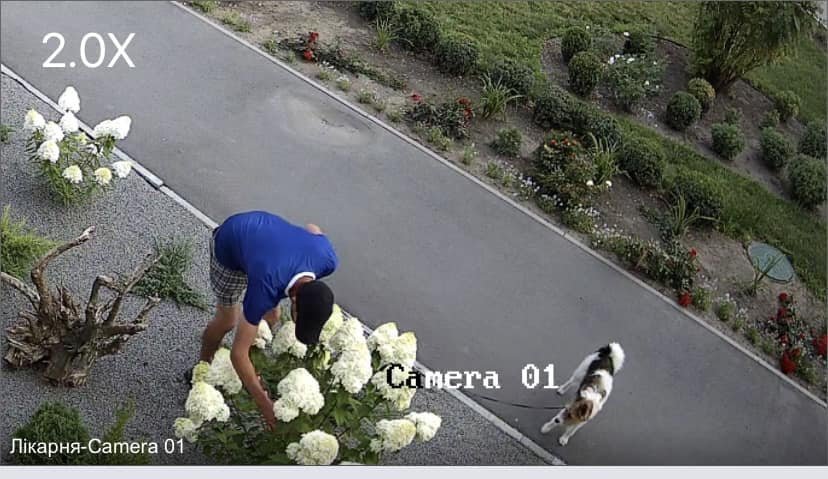 Камери відеоспостереження зафіксували, як на території лікарні «Кременчуцька» чоловік із собакою рвав з клумби гортензії.