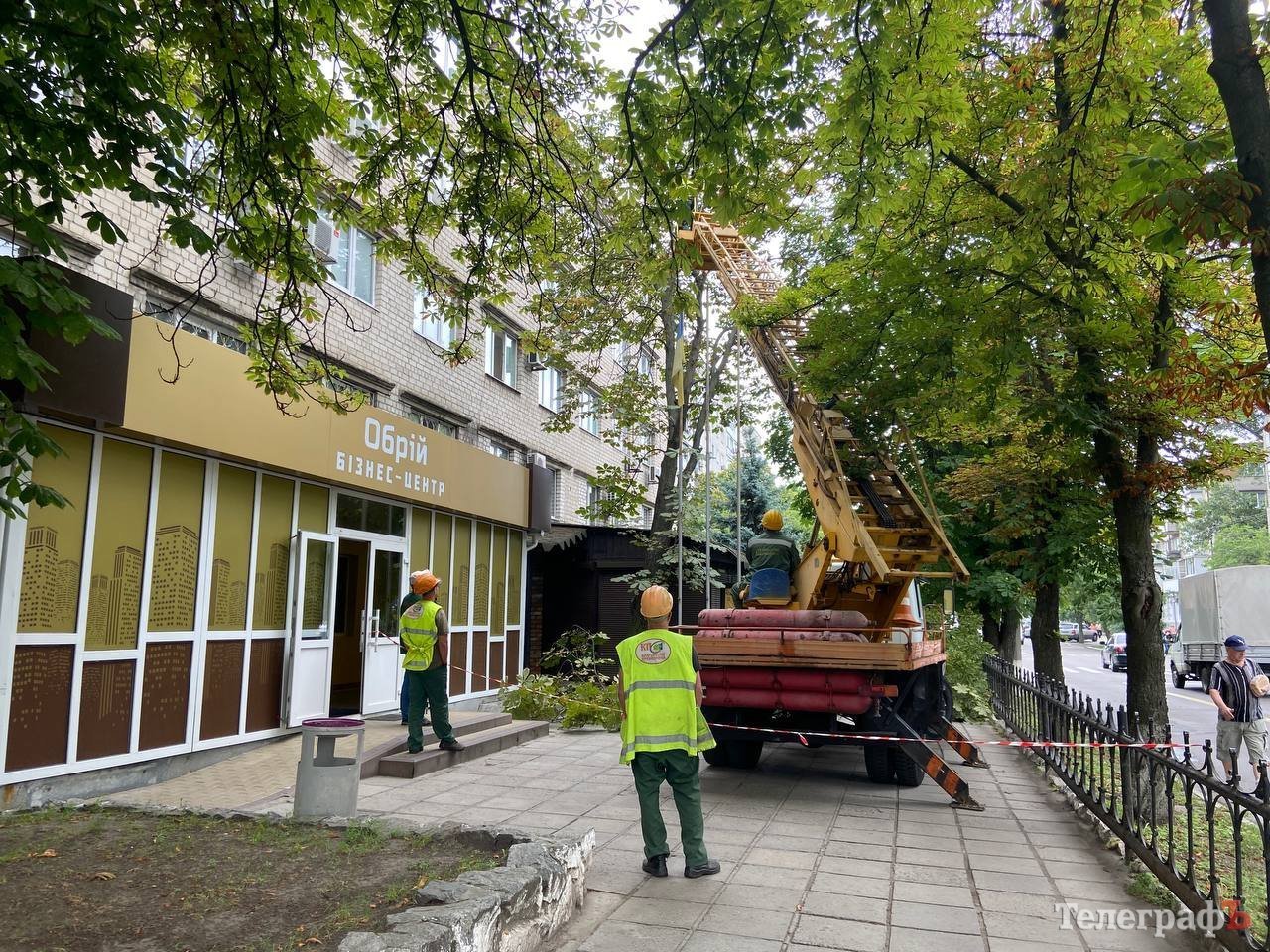 21 липня комунальники проводять обрізку дерев на вул. Небесної Сотні. Через це загородили прохід тротуаром біля перехрестя з вул. івана Мазепи поруч з «Белфастом».