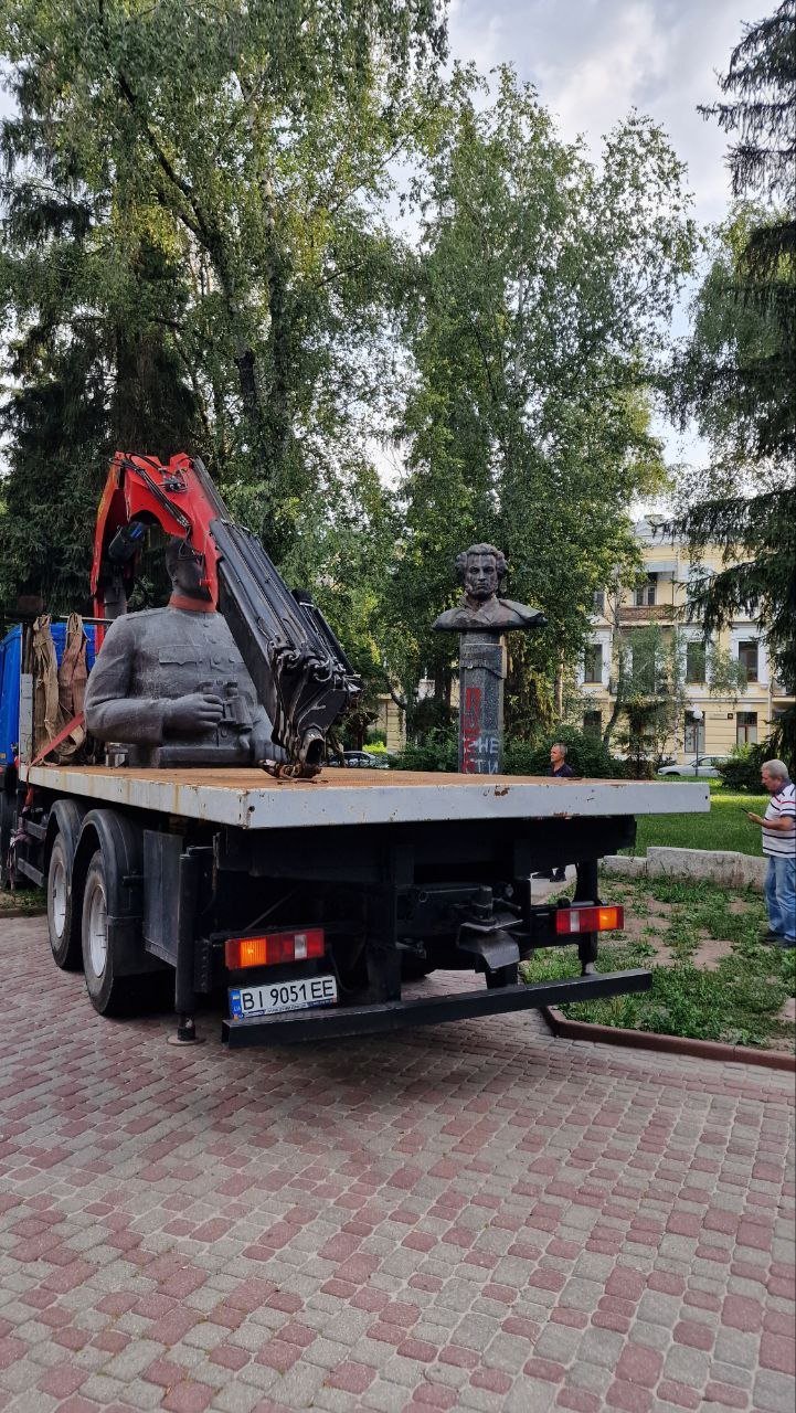 Сьогодні, 27 липня, у Полтаві демонтували пам’ятники Пушкіну та Ватутіну. Про це повідомив секретар Полтавської міської ради Андрій Карпов на своєму каналі у Телеграмі.
