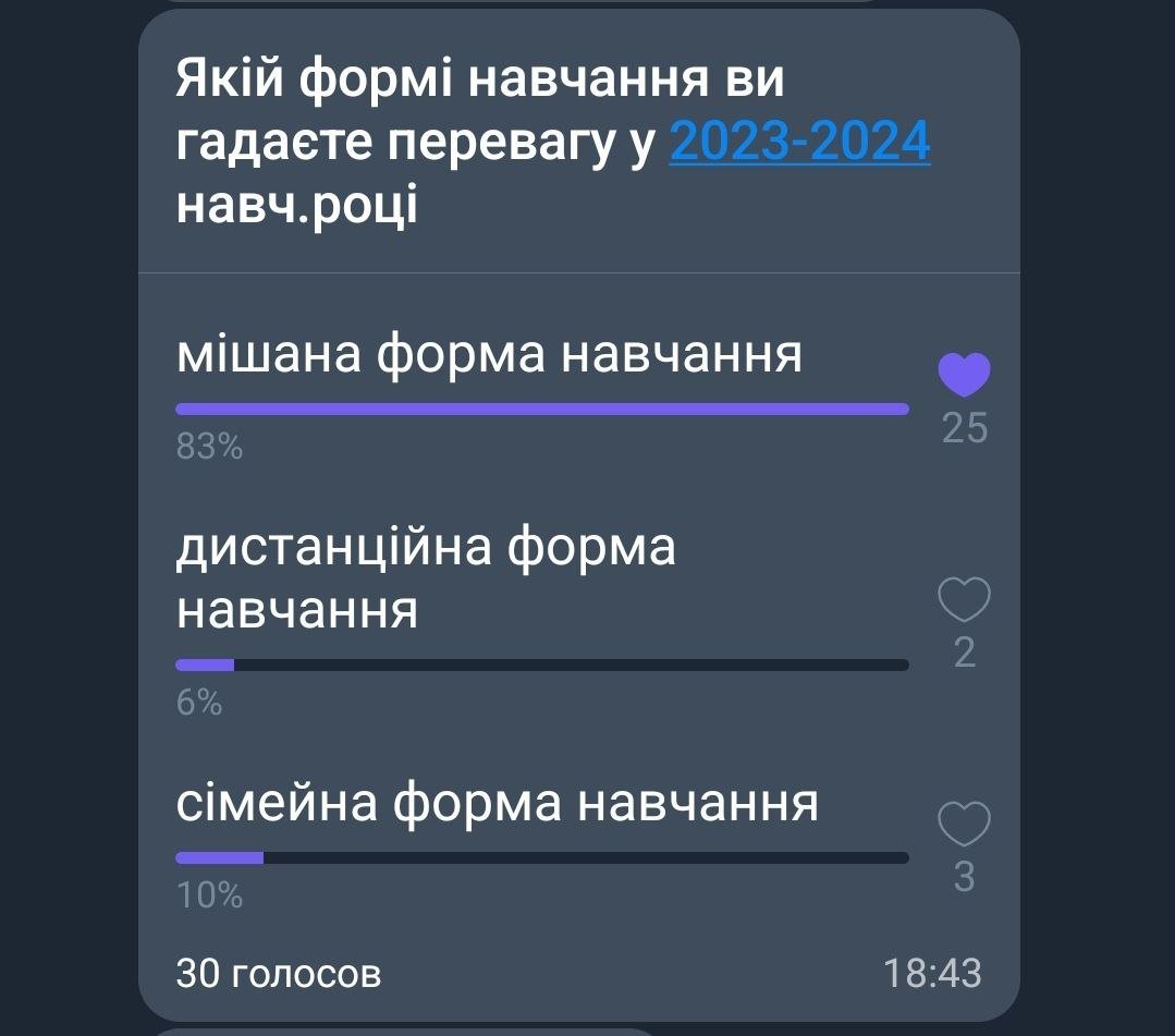 У батьківських чатах Кременчука запустили опитування, щоб з’ясувати, яку форму навчання для своїх дітей вони бажають з 1 вересня.