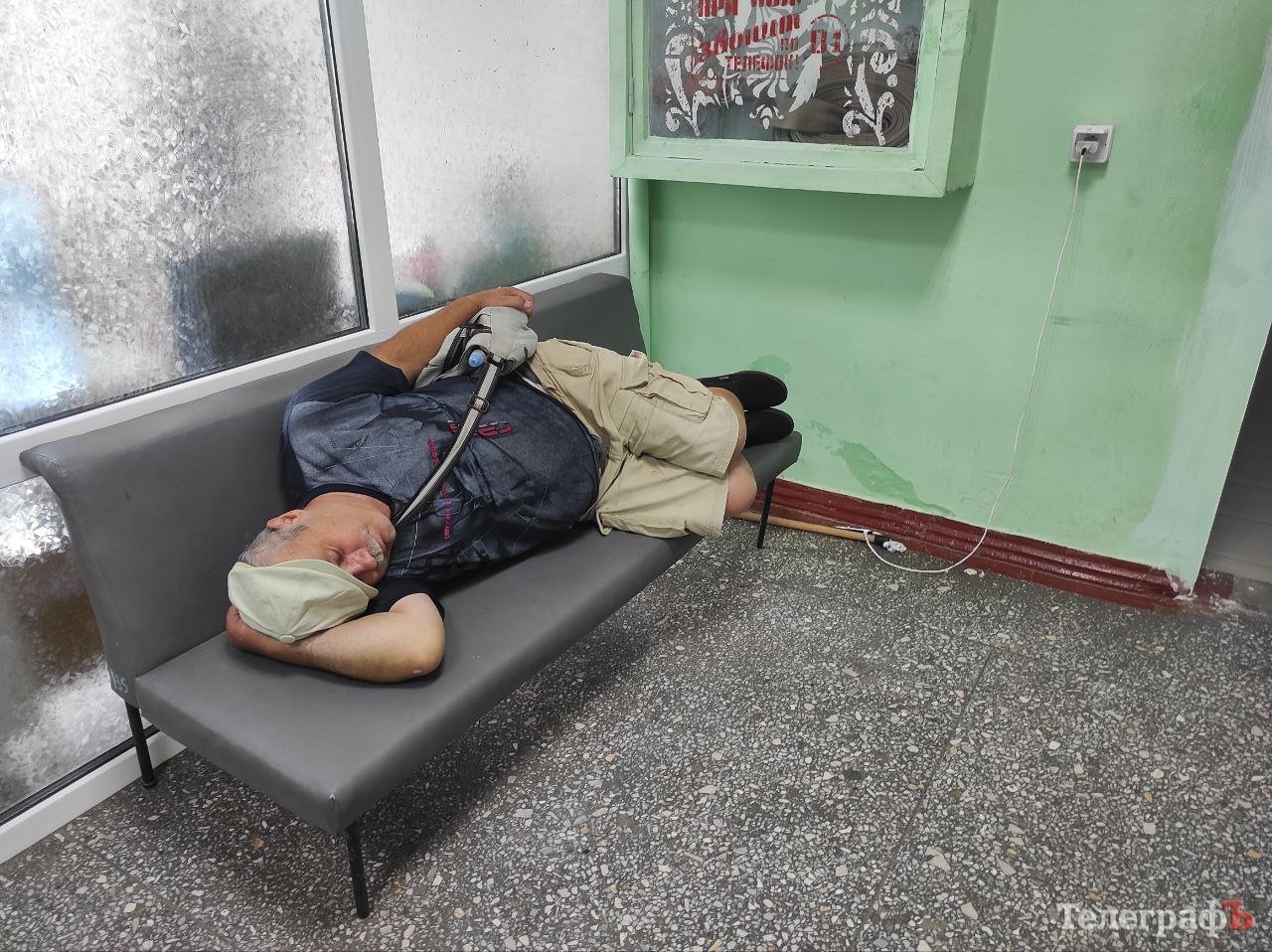 Як розповіли «Кременчуцькому Телеграфові» дівчата з реєстратури, це вже був чи не 10 виклик поліції на кременчужанина, який постійно приходить до їхнього медичного закладу, заряджає телефон, голосно слухає музику, удає, що спить на лавці тощо.