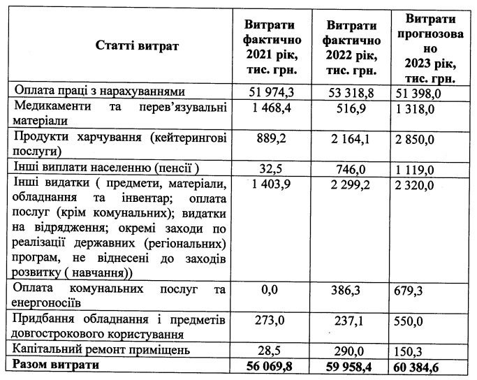 Разом з тим, видатки на зарплату з нарахуванням за 12 місяців 2022 року склали 53,3 млн гривень, що становить 87,5% від надходжень за договорами з НСЗУ. А також підприємство, відповідно договору з НСЗУ, повинно самостійно оплачувати харчування пацієнтів, закупляти медикаменти та перев’язувальні матеріали, проводити всі планові повірки медичного обладнання, закупляти пальне та інші витратні матеріали, оплачувати послуги з єдиної електронної медичної системи та інші поточні витрати.