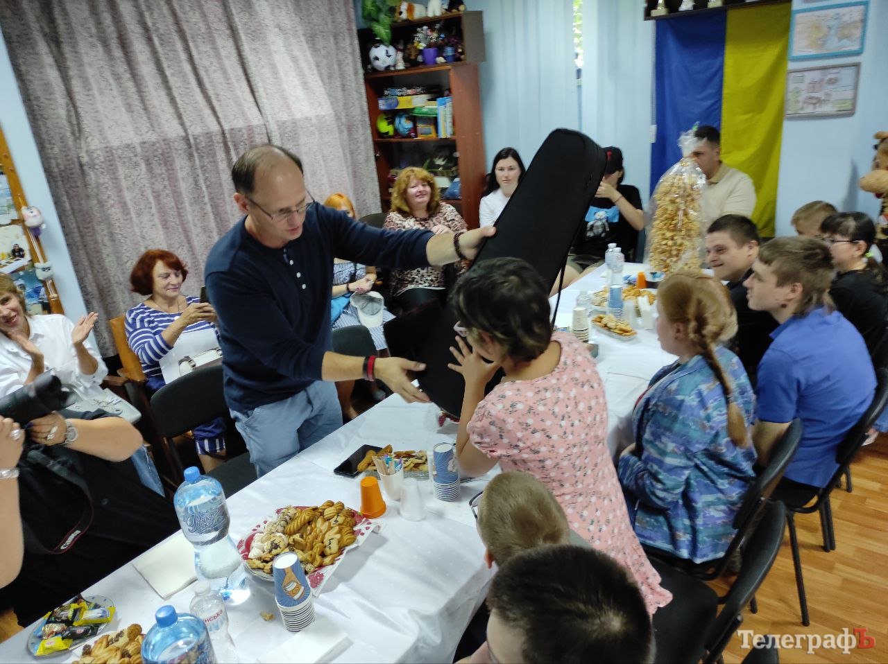 Підприємець Лінас Малишко, співак Егідіюс Лукшис і фотографка Реда Бразіте передали кременчуцьким дітям і дорослим з інвалідністю музичні інструменти та незвичайні смаколики.