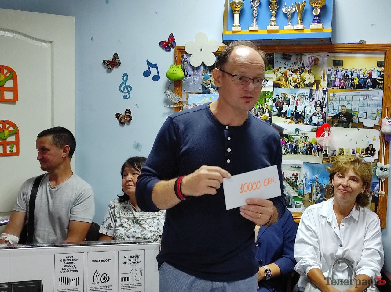 Також Егідіюс Лукшис передав очільнику товариства інвалідів Андрію Мельнику конверт з 10 тис. грн, які залишилися після купівлі музичних інструментів.