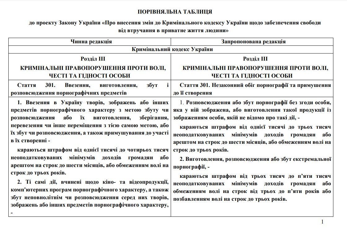 Проєкт закону України «Про внесення змін до Кримінального кодексу України щодо забезпечення свободи від втручання в приватне життя людини»: [attachment=774]