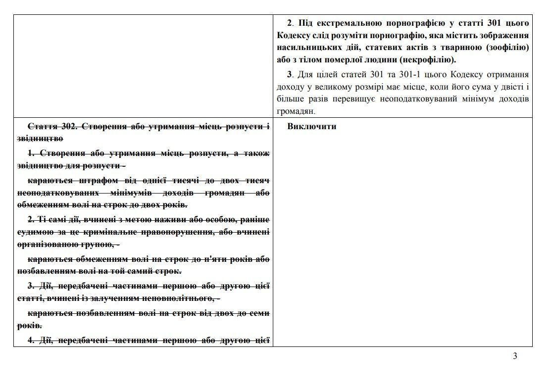 — Все. За все інше зі ст. 301 та ст. 302 кримінальну відповідальність прибираємо. Щоб фантазія правоохоронців не генерувала по 1000+ справ на рік.
