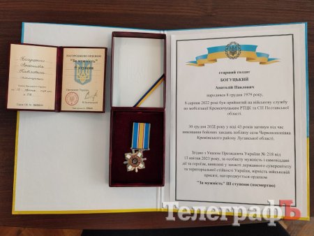 Сьогодні в Кременчуцькій районній військовій адміністрації вручили нагороду родині загиблого Героя з Кременчука – Анатолія Богуцького.