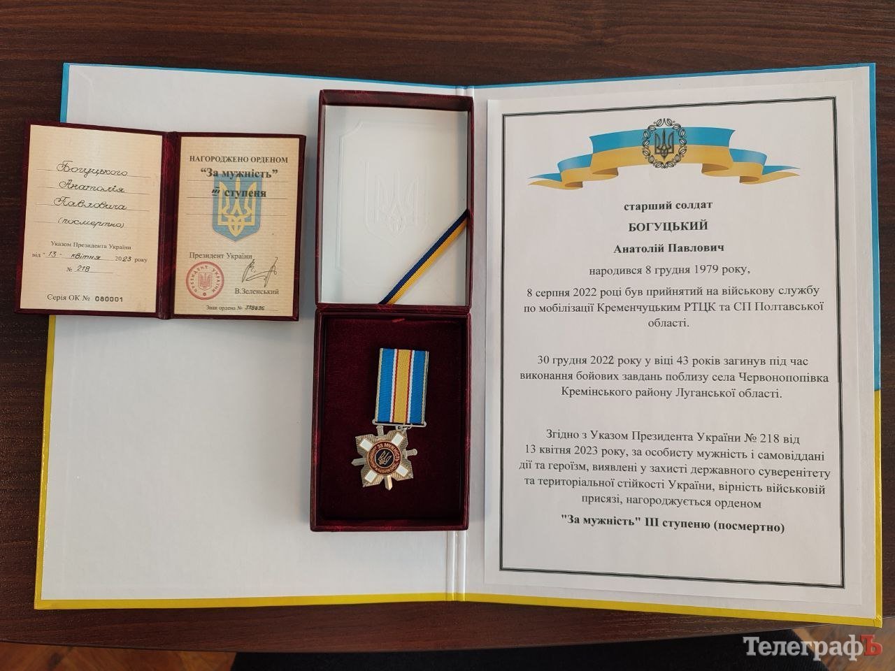 Він розповів, що Анатолій Богуцький народився 8 грудня 1979 року. 8 серпня 2022 року він був призваний на військову службу по мобілізації Кременчуцьким районним ТЦК та СП.