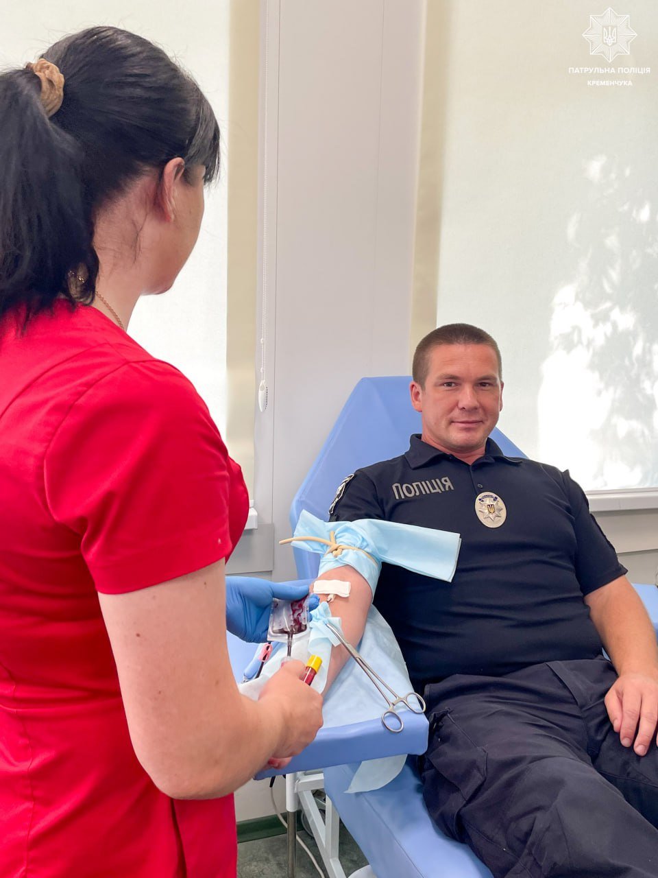Кременчуцькі патрульні вкотре долучилися до доброї справи — здали свою кров заради життя українців.
