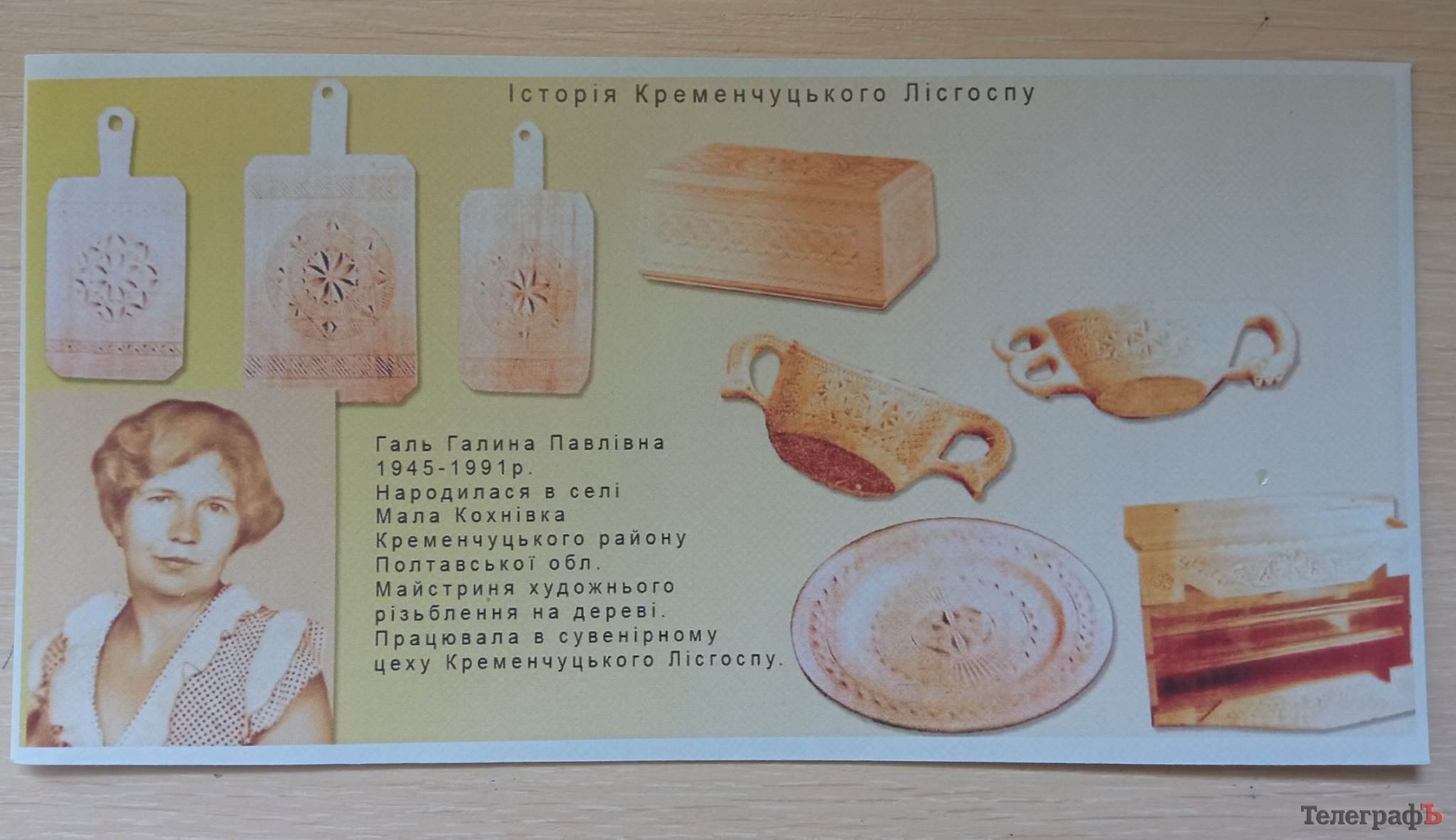 Кременчуцьке товариство філателістів випустило п’ятий поштовий конверт із серії «Історія Кременчуцького лісгоспу». На ньому зображено майстриню художнього різьблення на дереві Галину Галь та її роботи.