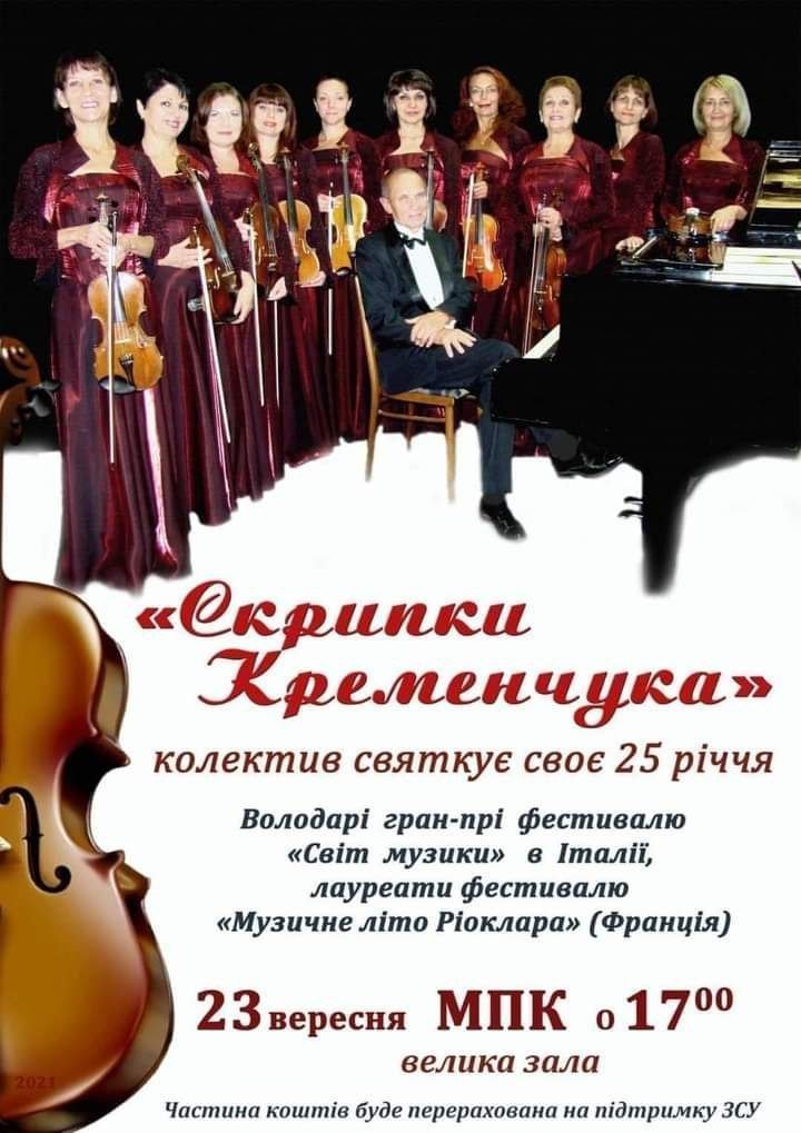 23 вересня о 17.00 у Міському палаці культури відбудеться концерт «Скрипок Кременчука», присвячений 25-річчу колективу.