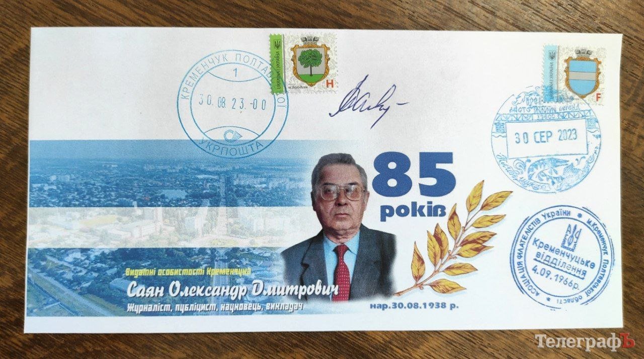Сьогодні, 30 серпня, о 10.00 у відділенні поштового зв’язку на вул. Сердюка, 20 Кременчуцьке товариство філателістів презентувало та провело урочисте «погашення» конвертів, присвячених 85-річчу одного з місцевих корифеїв журналістики Олександра Саяна. Подія зібрала близьких і друзів ювіляра, місцевих філателістів і ЗМІ.