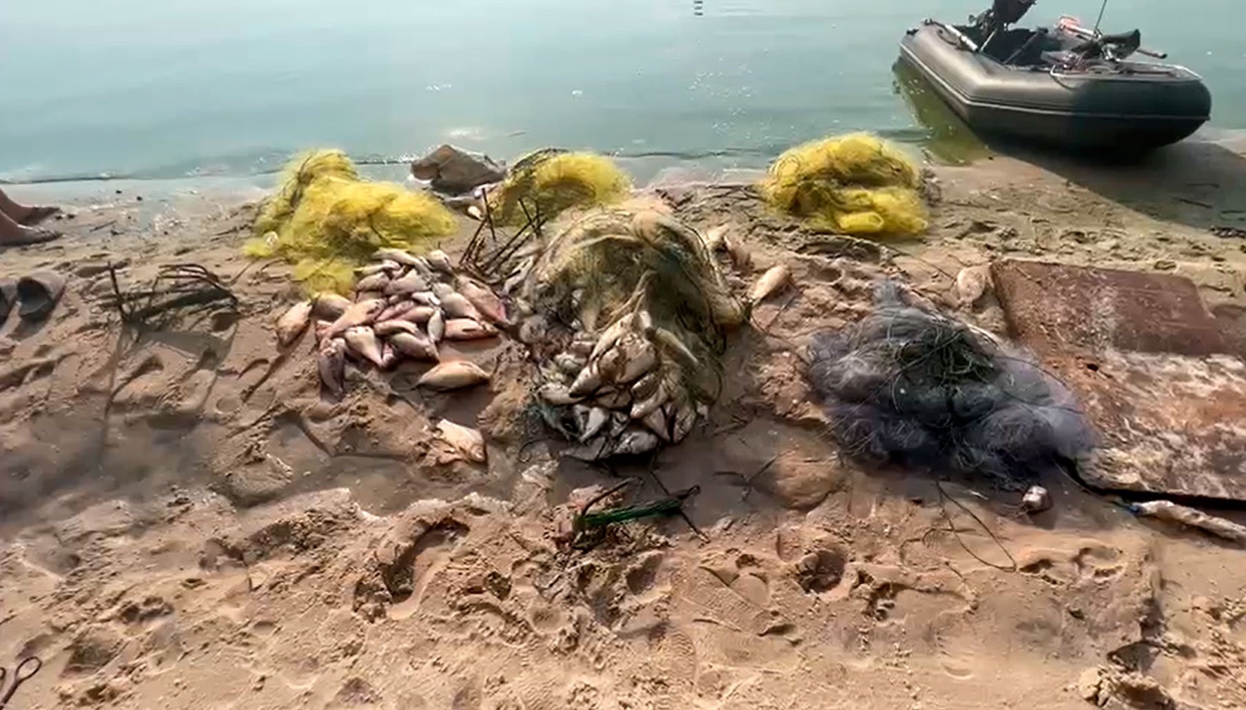 На Кременчуцькому водосховищі водна поліція виявила 12 браконьєрських сіток загальною довжиною 1200 метрів.