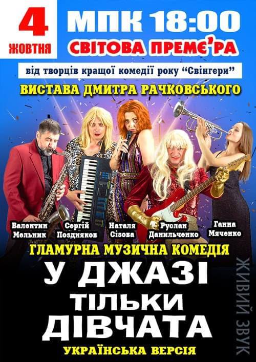 4 жовтня у Міському палаці культури о 18.00 Сучасний театр представить гламурну музичну комедію Дмитра Рачковського «У джазі тільки дівчата».