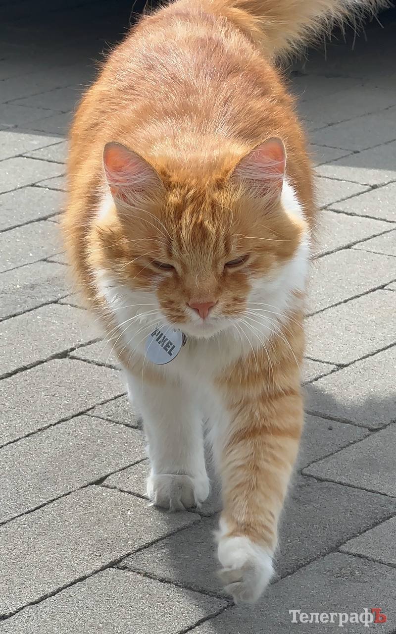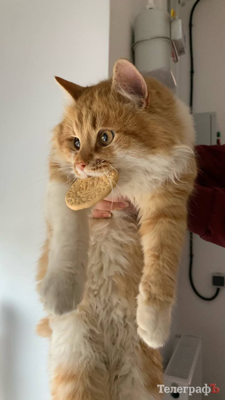 Як розповів Павло, рудий пухнастик живе у сервісному центрі вже три роки. Він — любитель полювати, і постійно приносить своїм людям то жуків, то хробаків, то мишей. Одного разу вполював та приніс пташку, а от тепер — вужа.