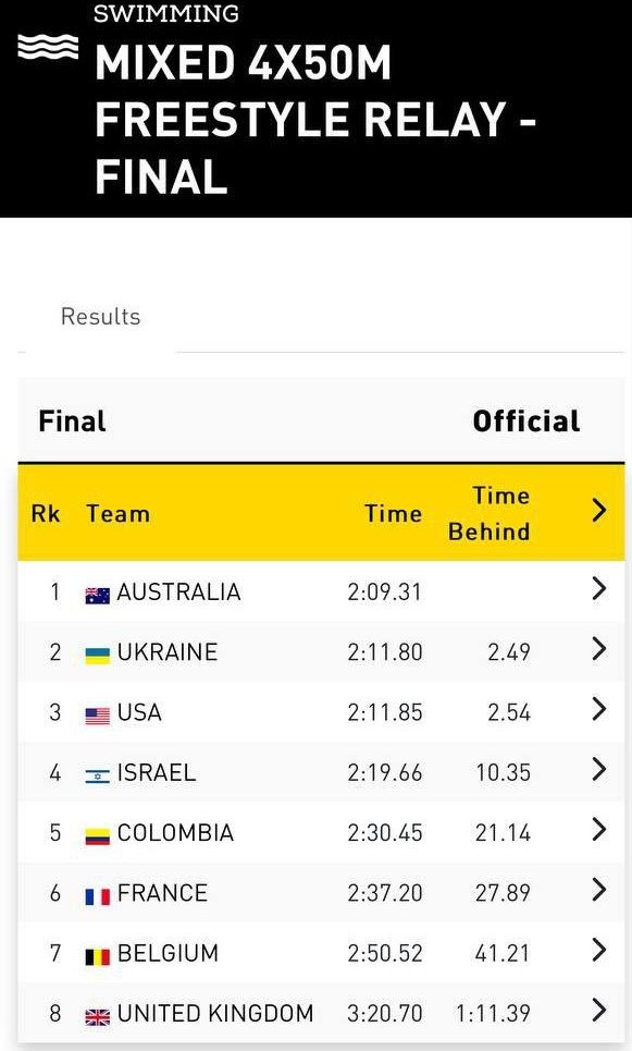 За інформацією Мінветеранів, разом з кременчужанином Євгенієм Кірейонком срібло на естафеті з плавання 4×50 м вибороли Назар Вознюк, Олександр Пономарьов та Ігор Дерман.