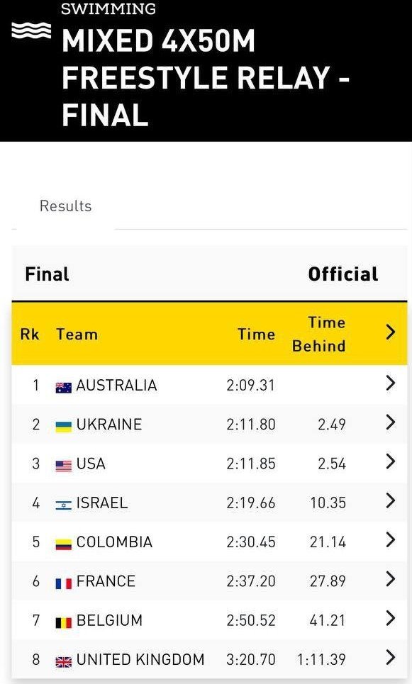 В естафеті Євгеній Кірейонок плив четвертим і прийшов до фінішу на долю секунди раніше за американця.