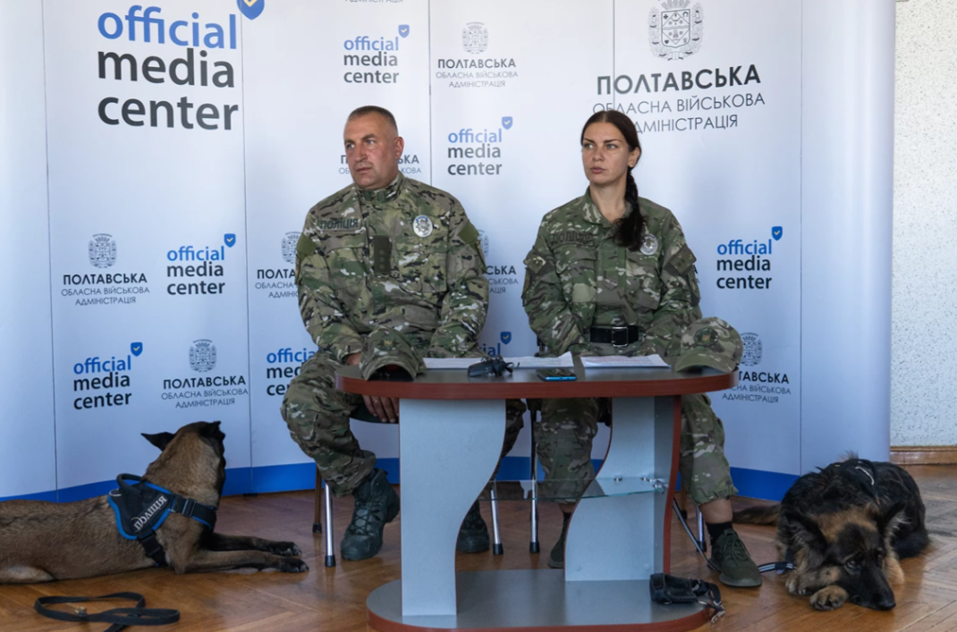 Від початку повномасштабного вторгнення Росії в Україну кінологічна служба поліції допомогли розкрити три вбивства, 5 фактів побиттів, 5 розбійних нападів та грабежів, близько 300 крадіжок та 120 інших злочинів. Спільно з вибухотехнічною службою оглянули 340 об’єктів. Крім того, собаки виявили 23 одиниці зброї, понад 2300 набоїв та 7 вибухових пристроїв. Про це 21 вересня на брифінгу повідомив інспектор Кінологічного центру поліції Полтавщини Сергій Кузьменко.