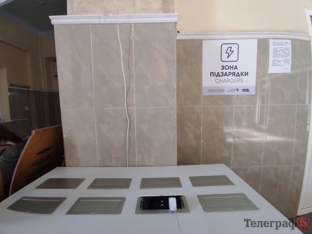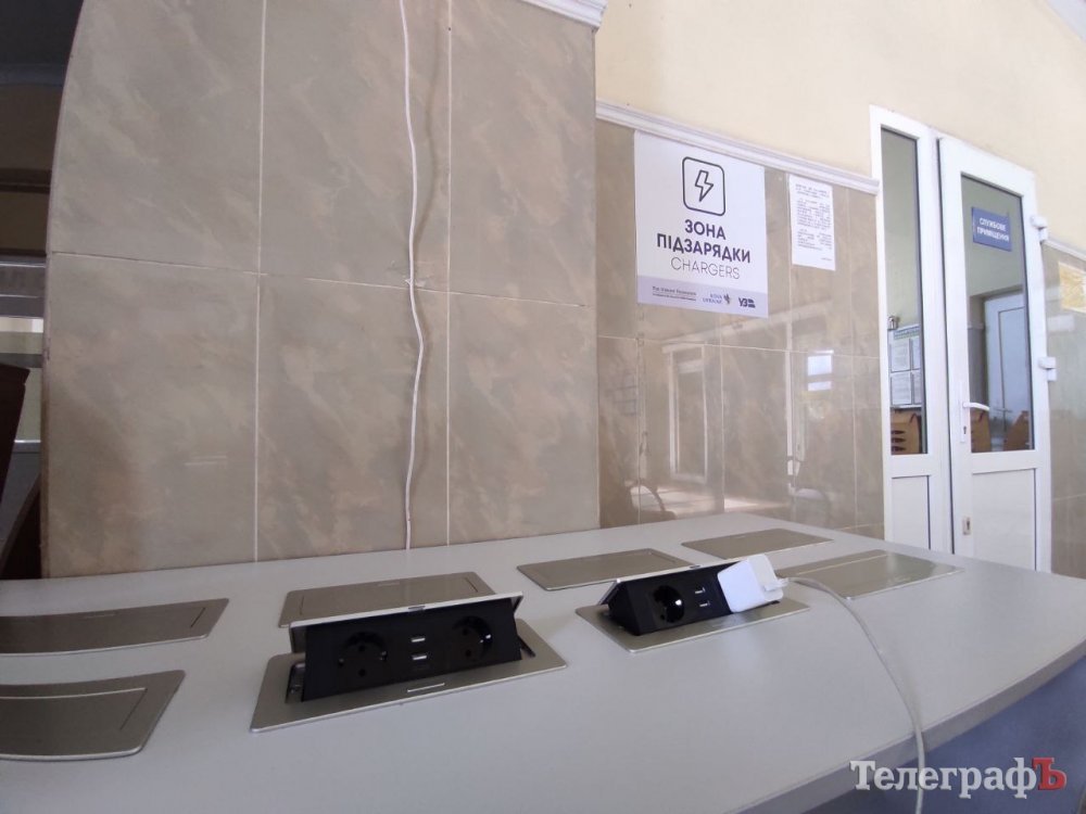 У холі залізничного вокзалу Кременчука можна безкоштовно зарядити гаджети. Близько 2 місяців тому там з’явився спеціальний стіл із 16 розетками та 16 USB-портами.