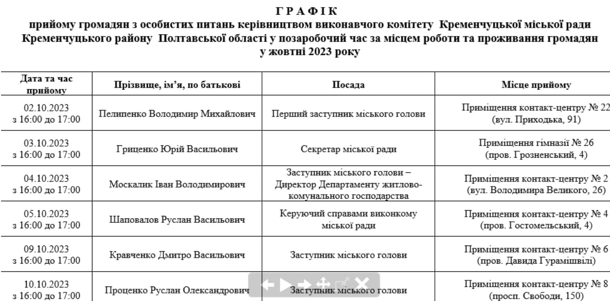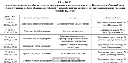 Графік, за яким керівництво Кременчука прийматиме містян у жовтні