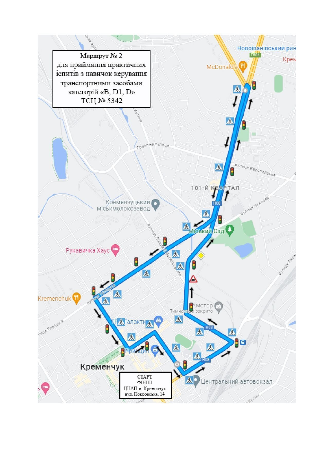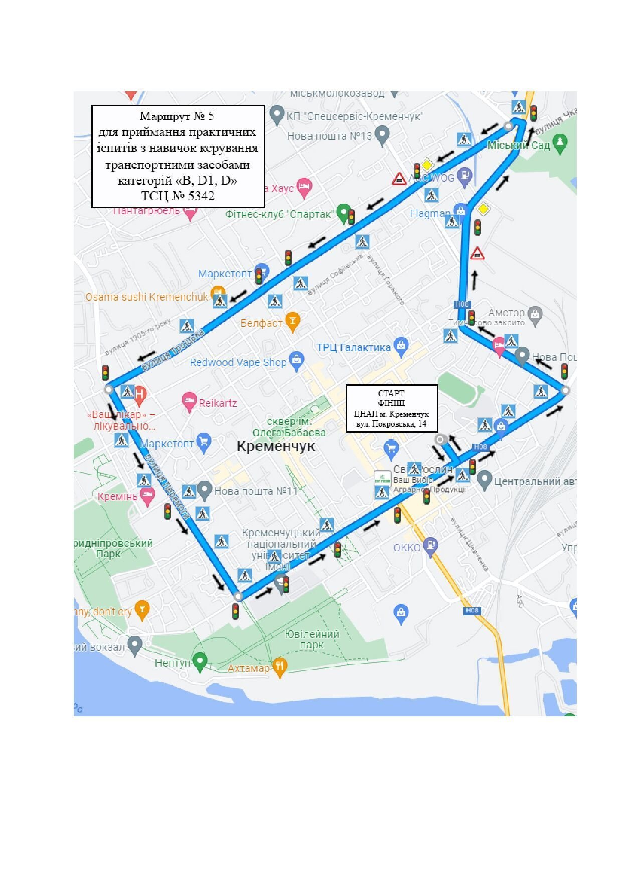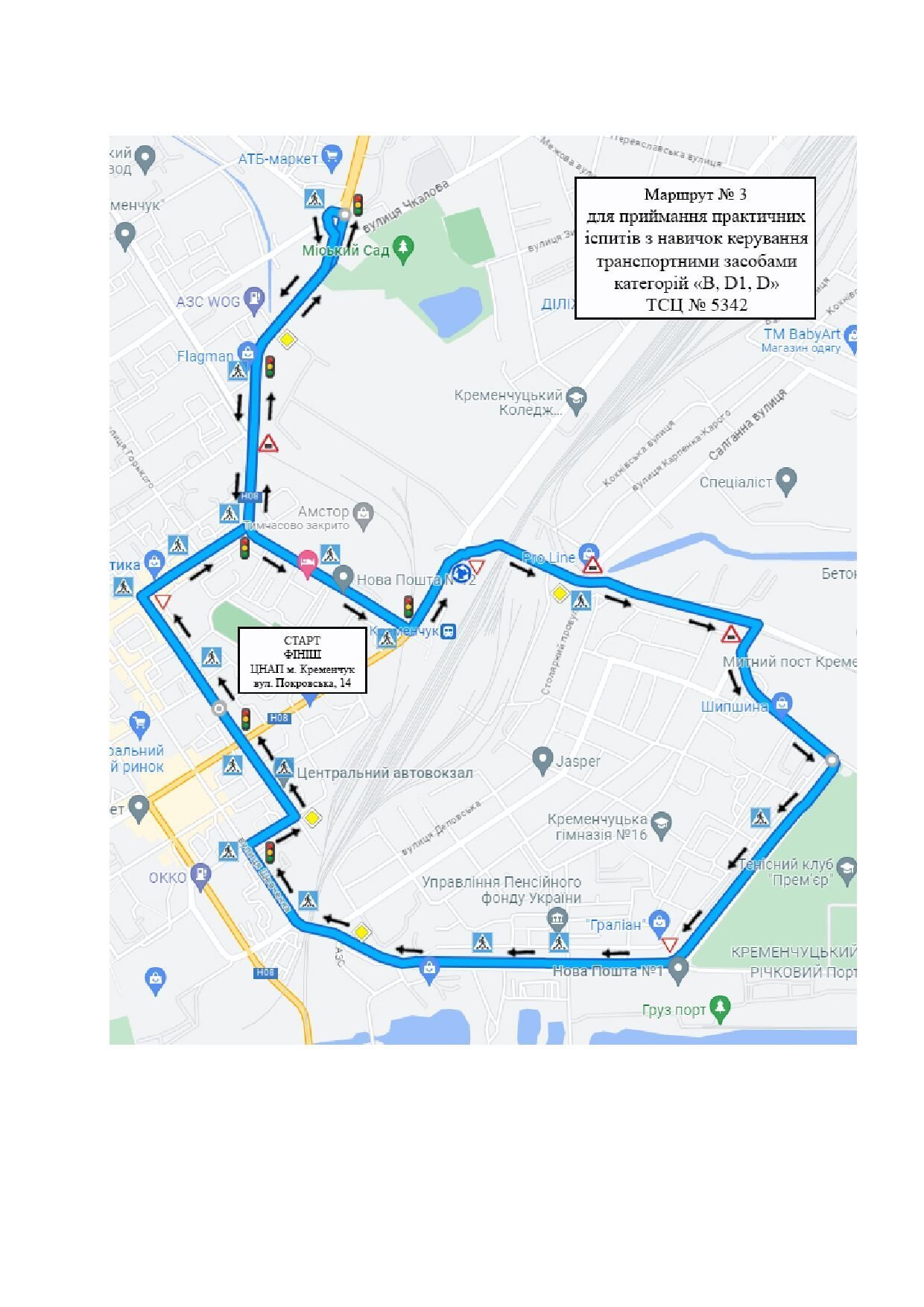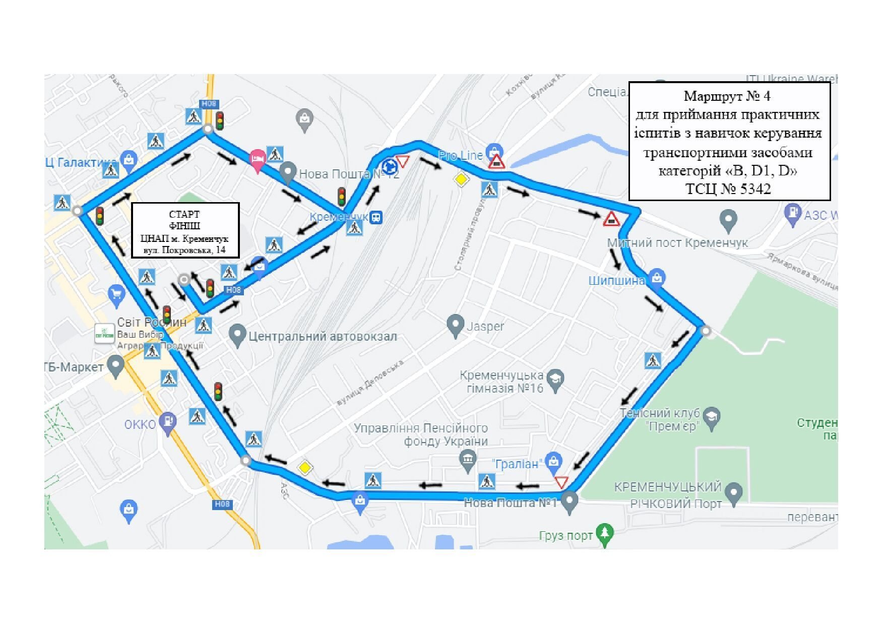У Кременчуці змінилися маршрути для складання практичних іспитів на водійське посвідчення. Відтепер для майбутніх водіїв категорій D, D1, D вони стартують від ЦНАПу. Про це стало відомо з інформації, розміщеній на сайті Кременчуцького сервісного центру МВС.