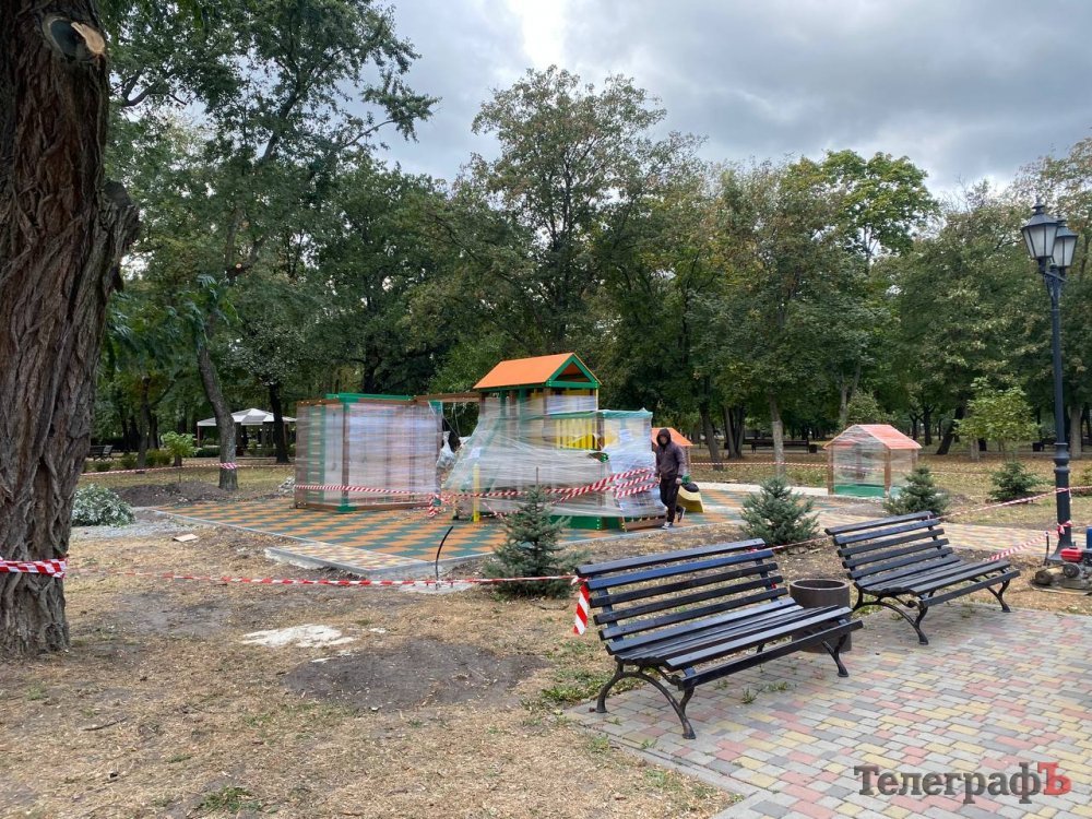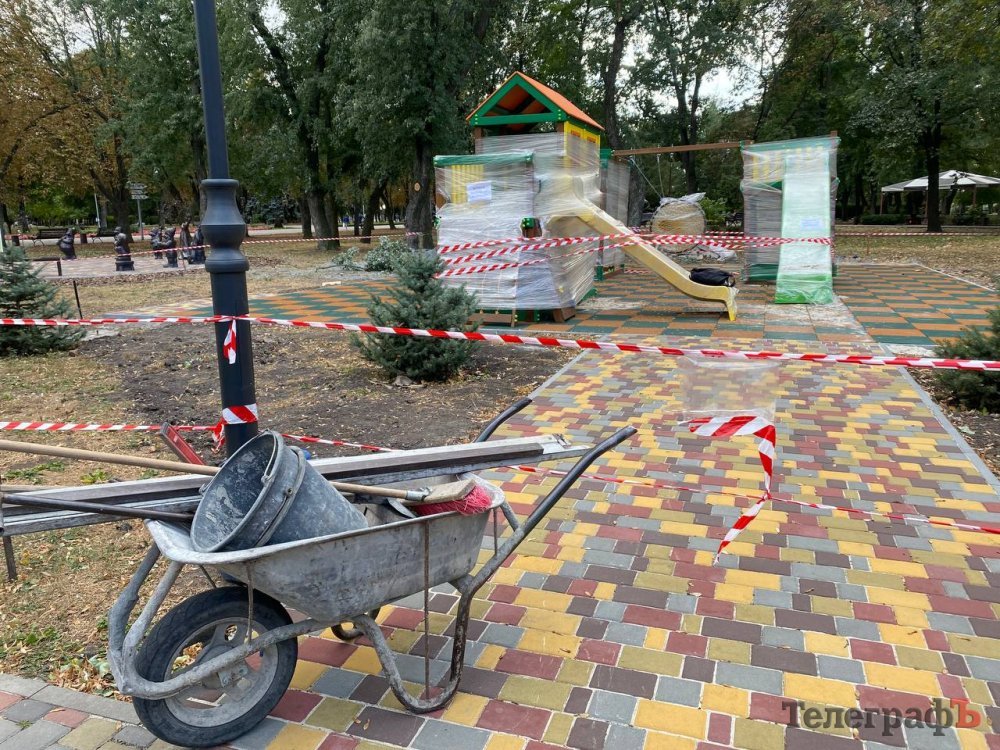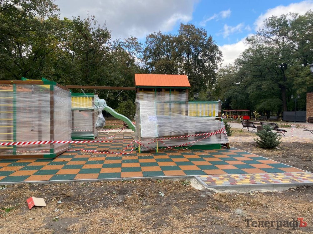 Сьогодні, 9 жовтня, «Кременчуцький Телеграф» пройшовся Придніпровським парком та побачив, що біля літньої сцени встановлюють новий дитячий майданчик.