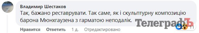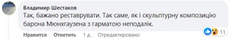 – Так, бажано реставрувати. Так саме, як і скульптурну композицію барона Мюнхгаузена з гарматою неподалік, – коментує Володимир Шестаков.