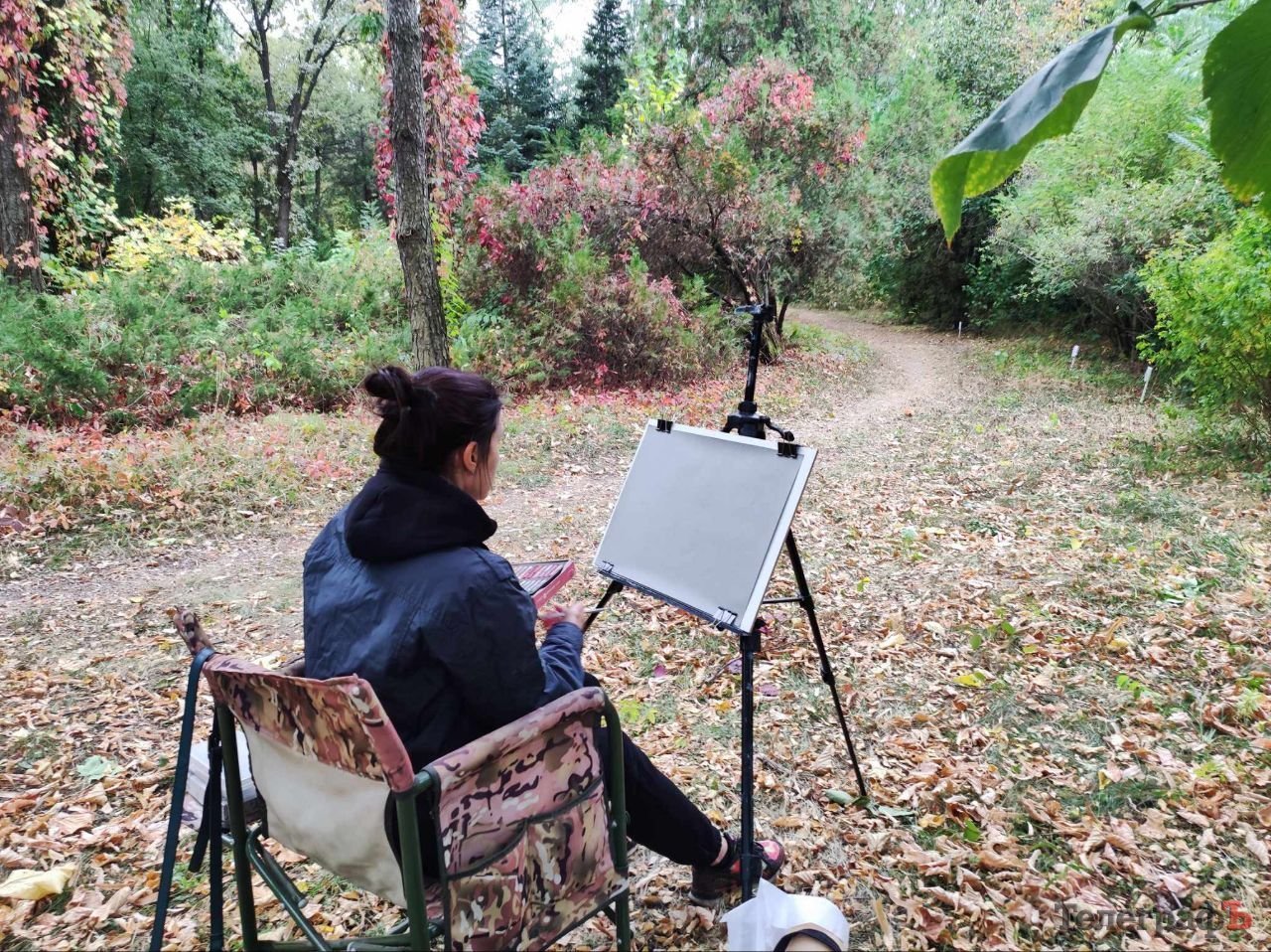 Після екскурсії митці розбрелися по стежках і галявинах творити свою магію. Хтось малював, хтось фотографував і знімав відео, а хтось для них позував. У цей час над деревами і кущами лунали звуки електрогітари Олександра Єруха.