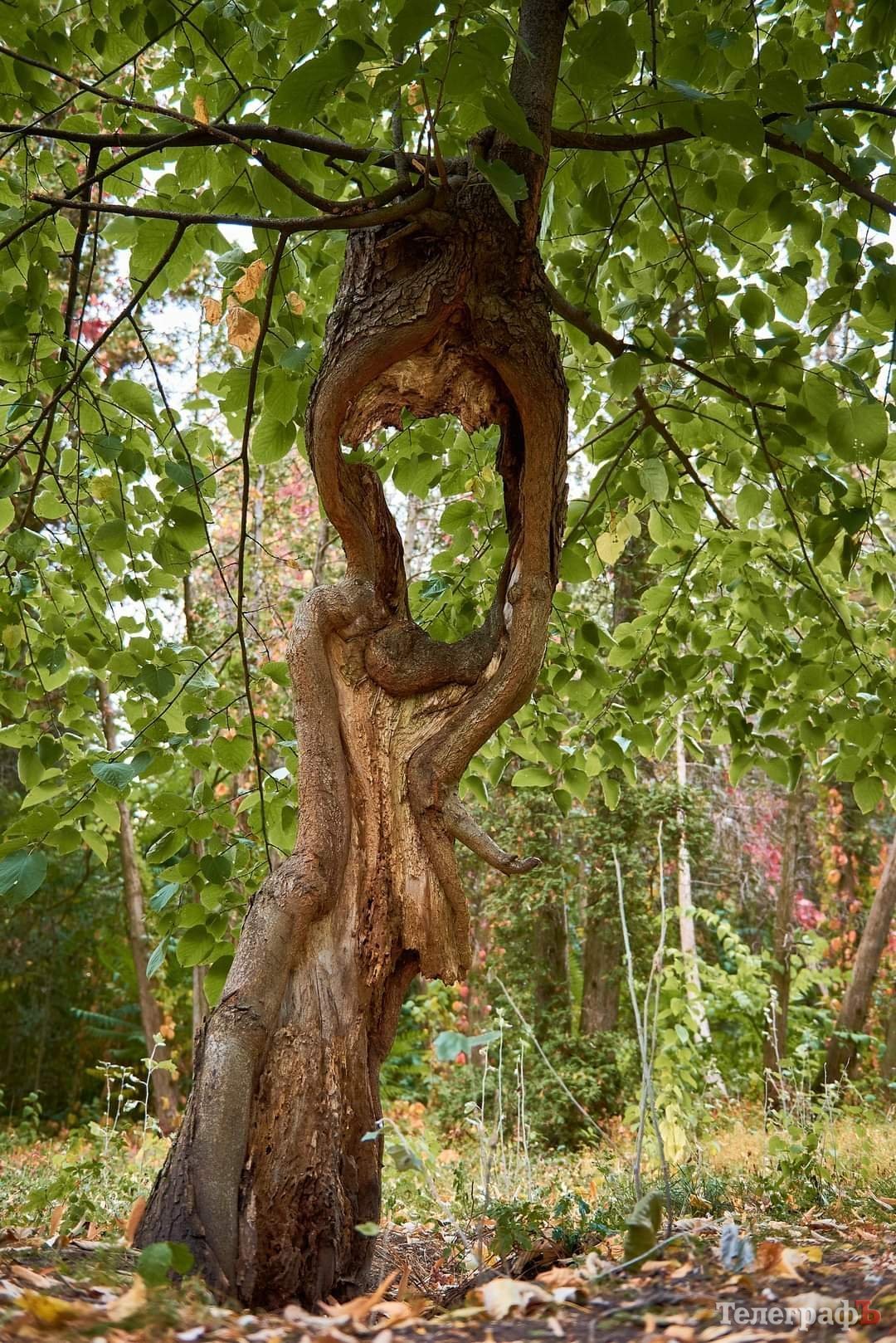 — Це сюжетна робота олією. Є незвичайне дерево в парку, де стовбур розходиться і з’єднується, утворюючи вікно. У моїй картині у цьому вікні грає на роялі кременчуцький композитор Сергій Горюнович, створюючи музику природи. Звичайно, все умовно зображено.