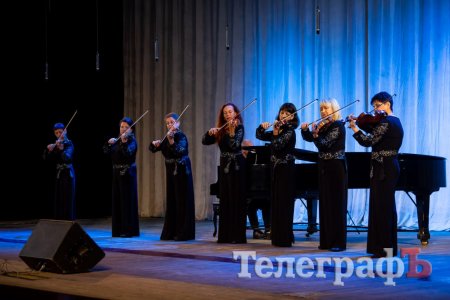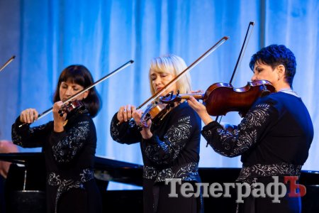 На сцені «Скрипки Кременчука»: сім жінок в нових елегантних костюмах зі скрипками в руках та маестро за роялем. Перші звуки скрипки і зал поринув в дивовижний світ музики…