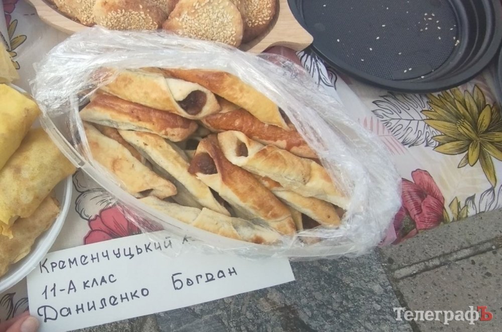 Вчора, 15 жовтня, на вході до Міського палацу культури волонтери продавали смаколики від школярів ліцей №5 імені Т.Г.Шевченка. Тут торт «Наполеон» від 9-А класу, пиріжки від 8-А класу, ще смаколик з повидлом від 11-А класу. Усі виручені кошти підуть на підтримку 503 окремого батальйону морської піхоти.