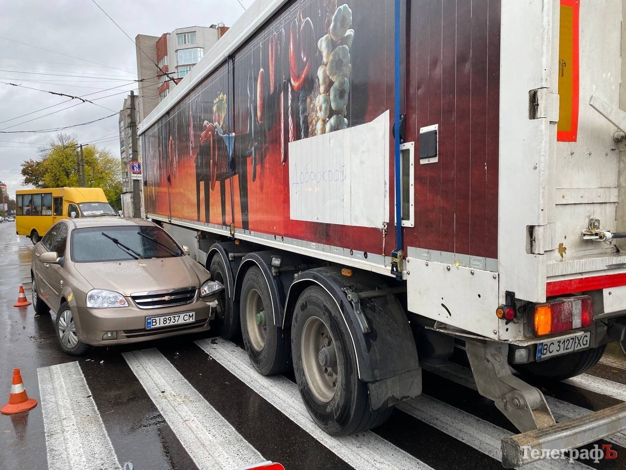 Відомо, що зіткнулись автомобіль Chevrolet та вантажівка DAF. Рух ускладнений, на місці події працює патрульна поліція Кременчука.