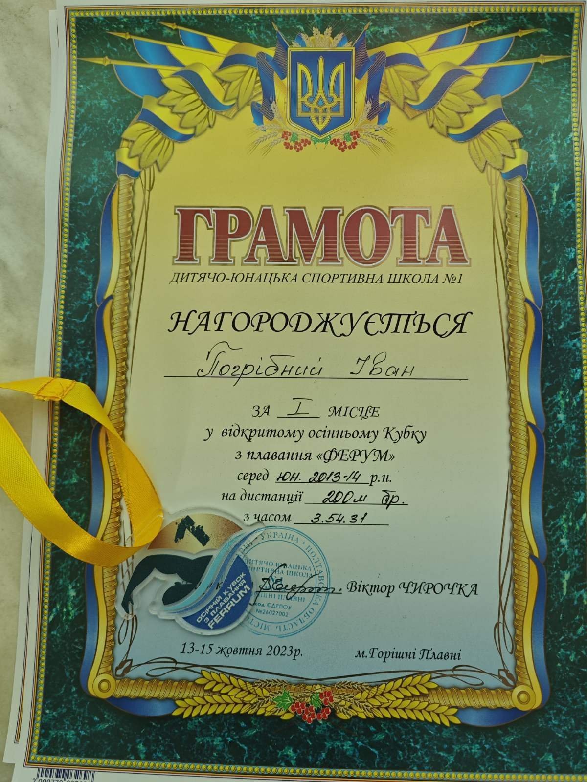 Данило Лозицький вперше виконав норматив ІІ спортивного розряду на дистанціях 200м комплексне плавання та 50 м брасом. Іван Погрібний на дистанції 200 м брасом виборов «золото», а на дистанціях 100 м і 50 м брасом — «бронзу».