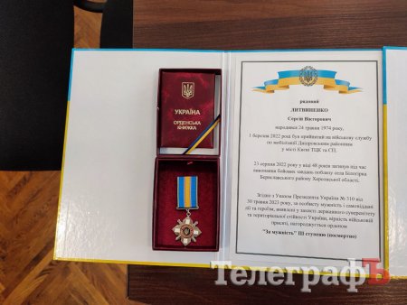 Нагороду від Президента України вручили рідним солдата Сергія Вікторовича Литвиненка. Указом Президента України № 310 від 30 травня 2023 року, за особисту мужність, самовіддані дії та героїзм, виявлені при захисті нашої країни, він був посмертно нагороджений орденом «За мужність» II ступеня.