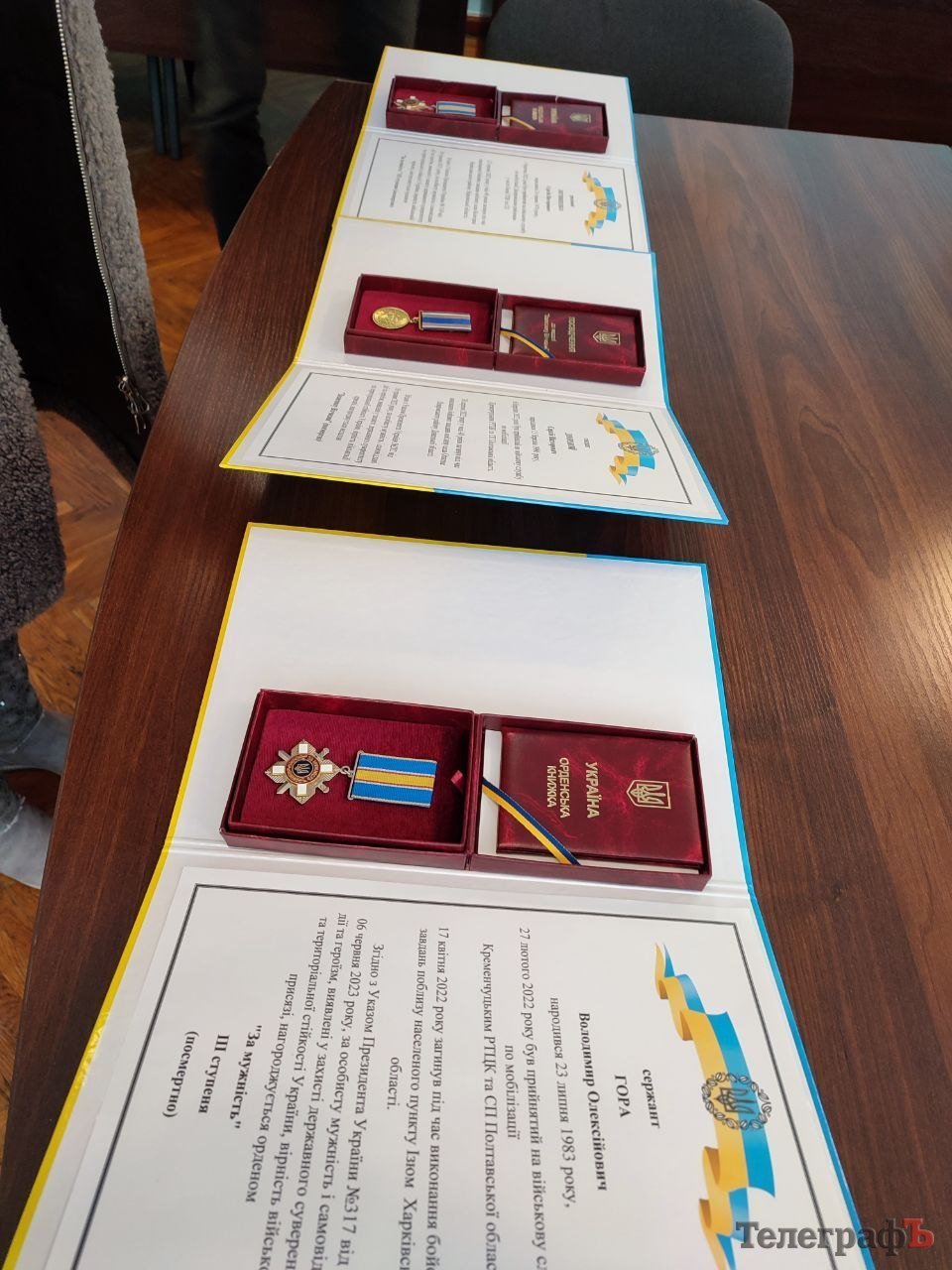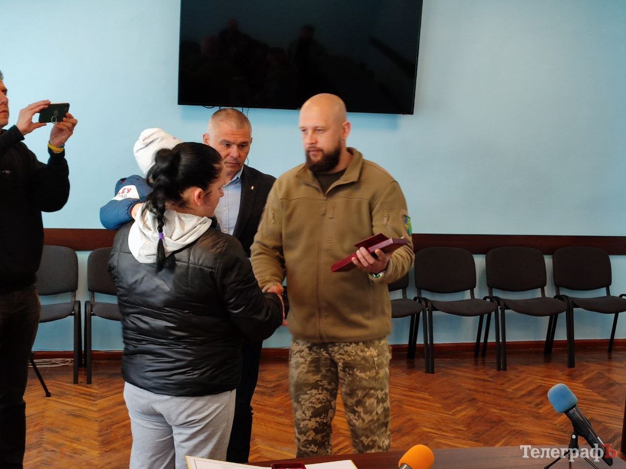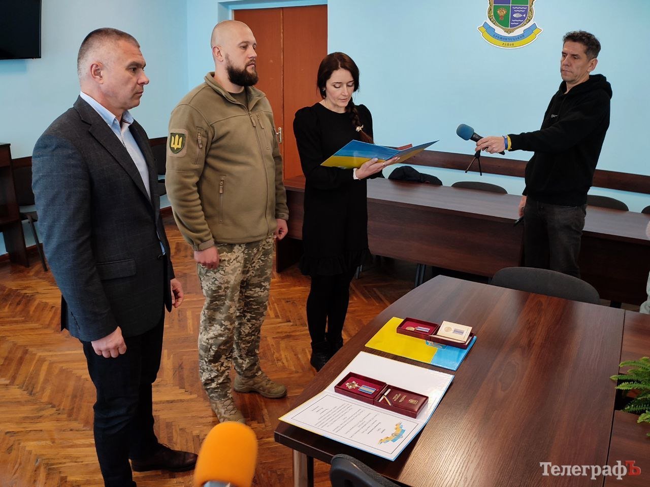 Нагороди від імені Президента України передали начальник Кременчуцької районної військової адміністрації Олег Лєднік та т. в. о. начальника Кременчуцького районного ТЦК та СП (колишній військкомат — ред.) підполковник Мирослав Волков.