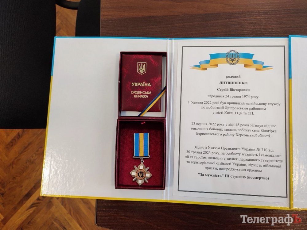 Нагороду від Президента України вручили рідним солдата Сергія Вікторовича Литвиненка. Указом Президента України №310 від 30 травня 2023 року, за особисту мужність, самовіддані дії та героїзм, виявлені при захисті нашої країни, він був посмертно нагороджений орденом «За мужність» II ступеня.