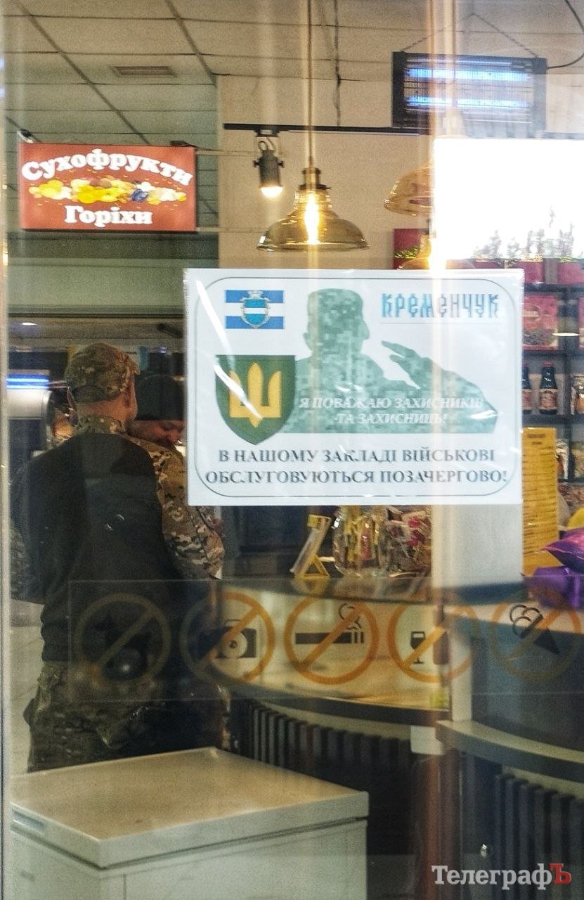 Тиждень тому «Телеграф» водному з супермаркетів побачив, коли у черзі в «час пік» стояв військовослужбовець. Сподіваємося, що не лише мережа супермаркетів, магазинів та торгових центрів приєднаються до акції, а в першу чергу кременчужани проявлятимуть пошану до наших захисників.