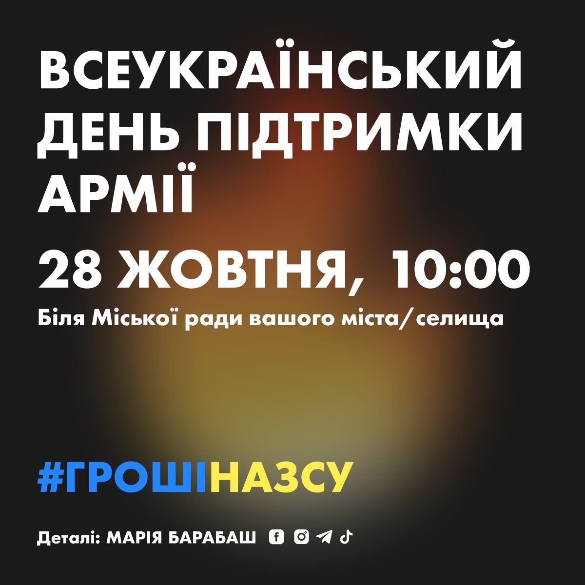 У суботу, 28 жовтня, біля Кременчуцької міської ради планують провести пікет на підтримку української армії. Подібний захід проведуть у 7 містах України — у Києві, в Одесі, Дніпрі, Черкасах, Тернополі, Львові та у Кременчуці.